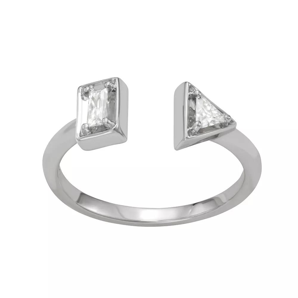 So pleasant! This sterling silver ring is an ideal addition to any jewelry box. Coming in at 0.19 carats of diamond equivalent weight from two moissanite gemstones, you can't go wrong! | Moissanite Outlet Lab Created Sterling Silver 0.19Ct. Tw. Moissanite Fashion Ring, White, 8