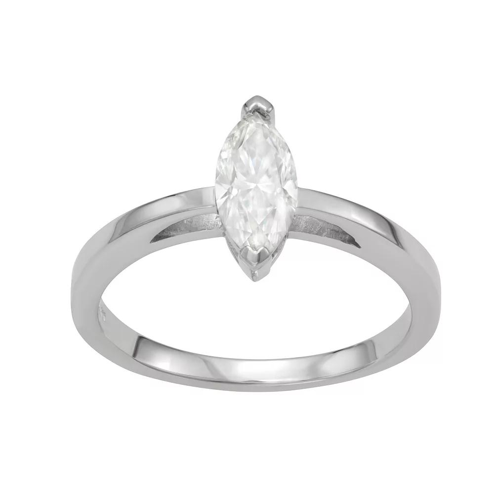 An excellent gift for that special someone (even you!), this dainty sterling silver ring features 0.70 carats of moissanite set in a two prong- your search stops here! | Moissanite Outlet Lab Created Sterling Silver 0.70Ct. Tw. Moissanite Marquise Solitaire Ring, White, 6