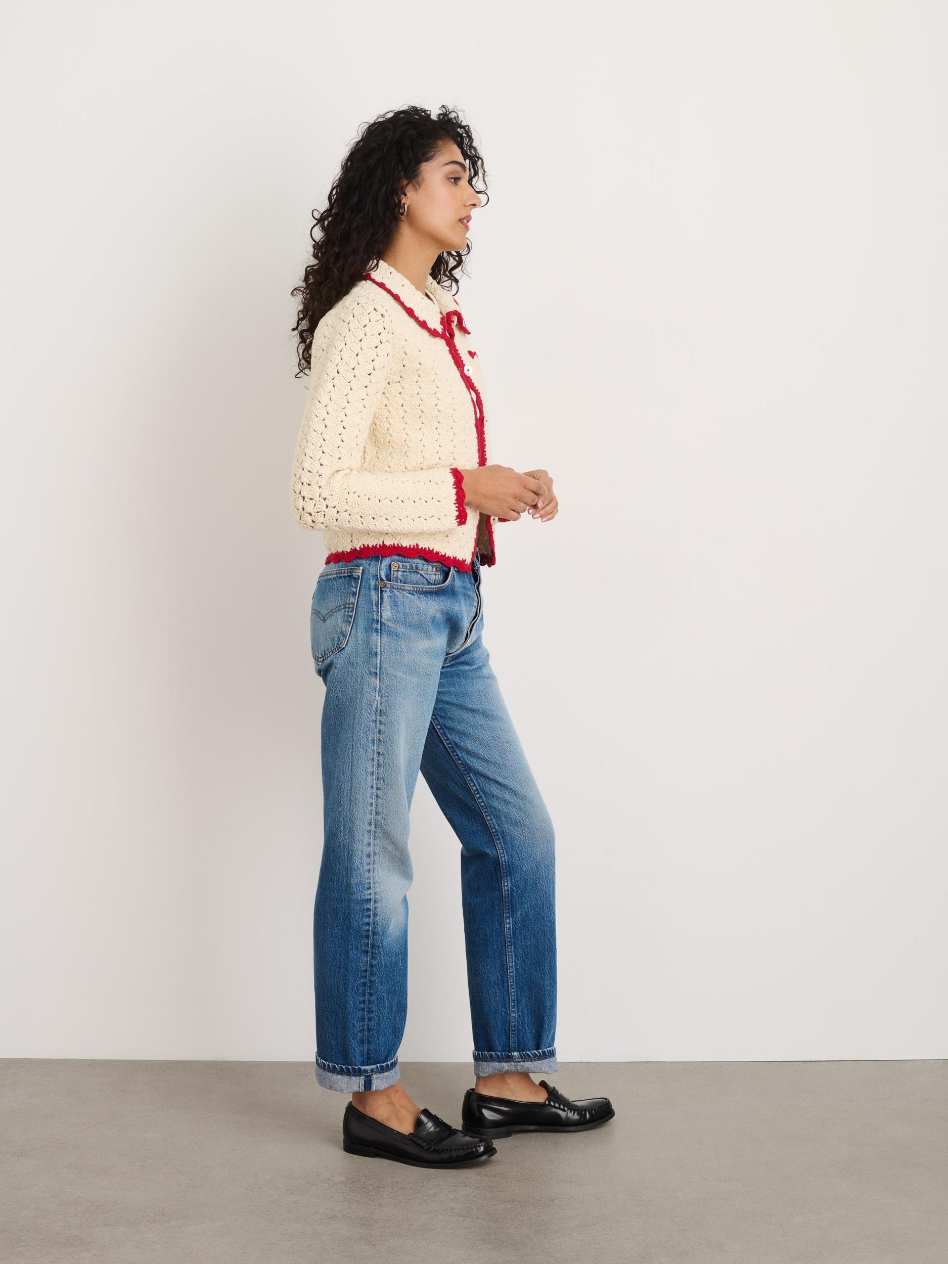 We only made a handful of these cardigans, inspired by those crocheted jackets you'd see while vacationing in the South of France back in the day. Each one-of-a-kind piece was hand-crafted in Peru at a small workshop owned by two women who specialize in the exact stitch + construction we were looking for (which is all