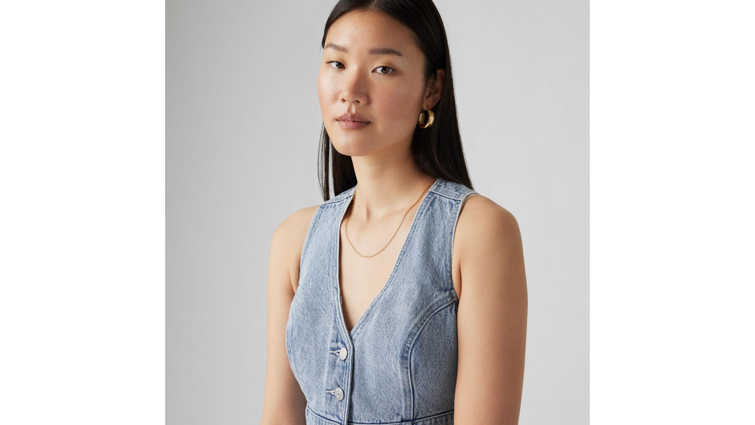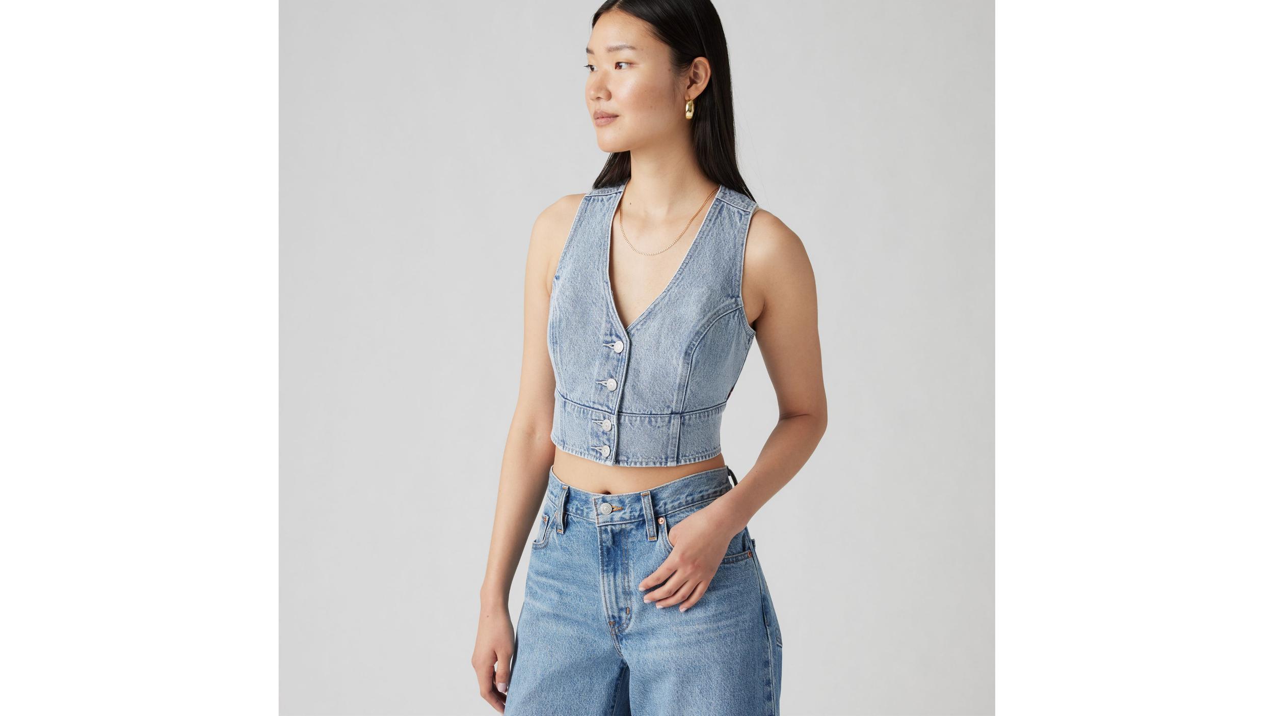 What's better than a flattering corset? Our Mona Denim Corset. We designed it with a slim fit and a button-up front. A flattering denim corset Cut with a slim fit