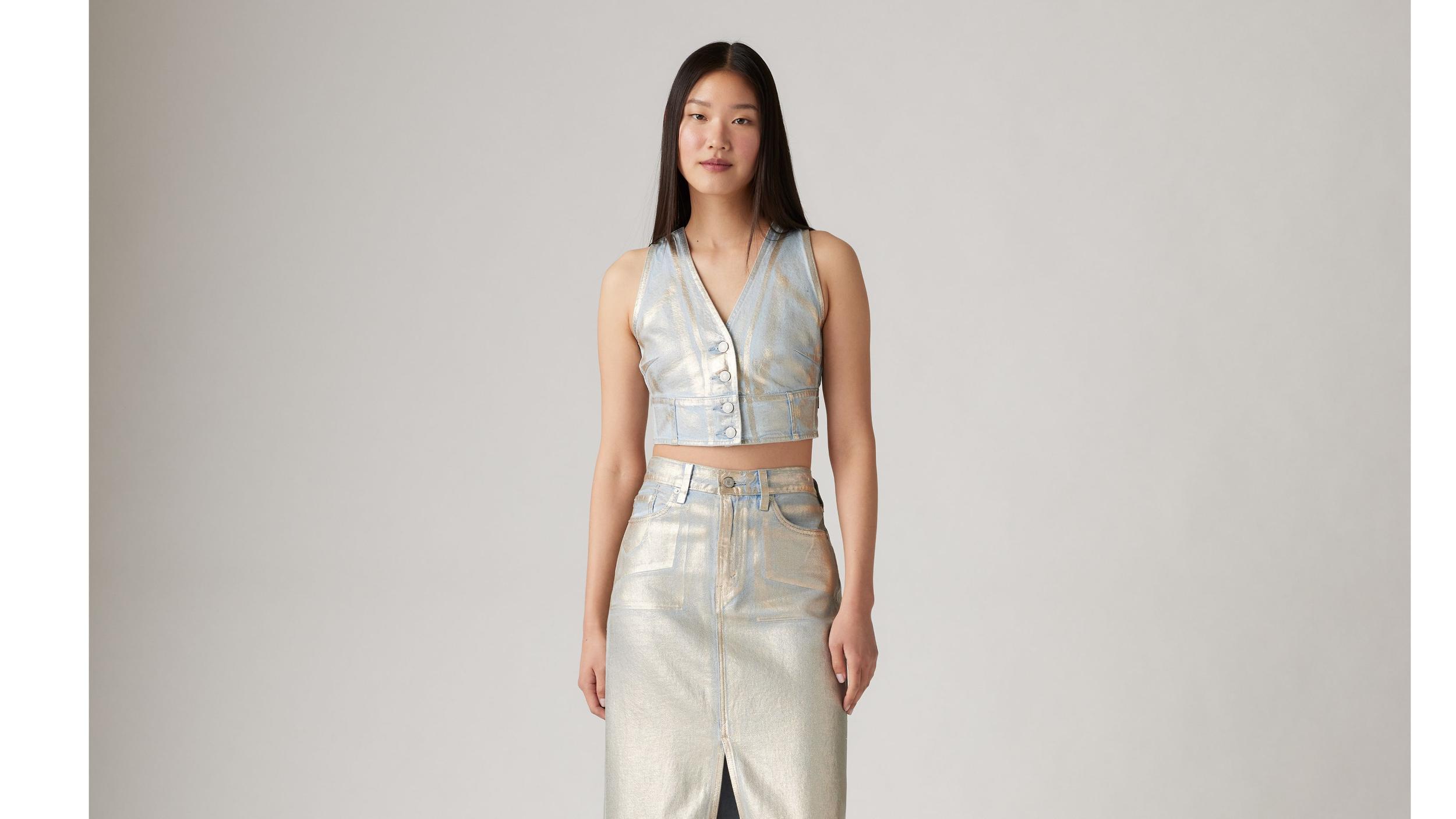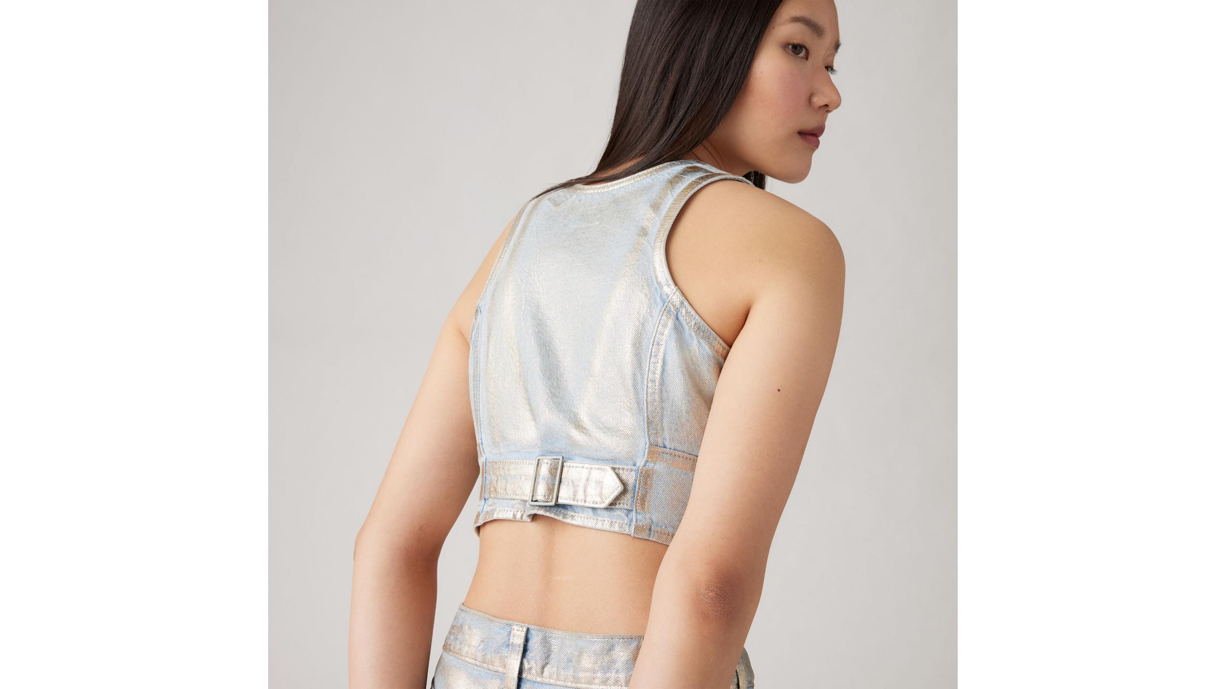 Silver Metallic Coated Denim Corset Top