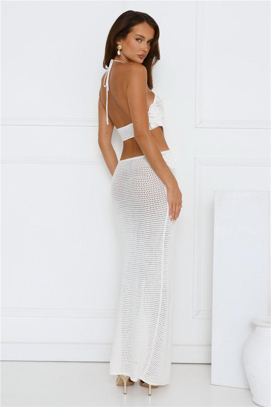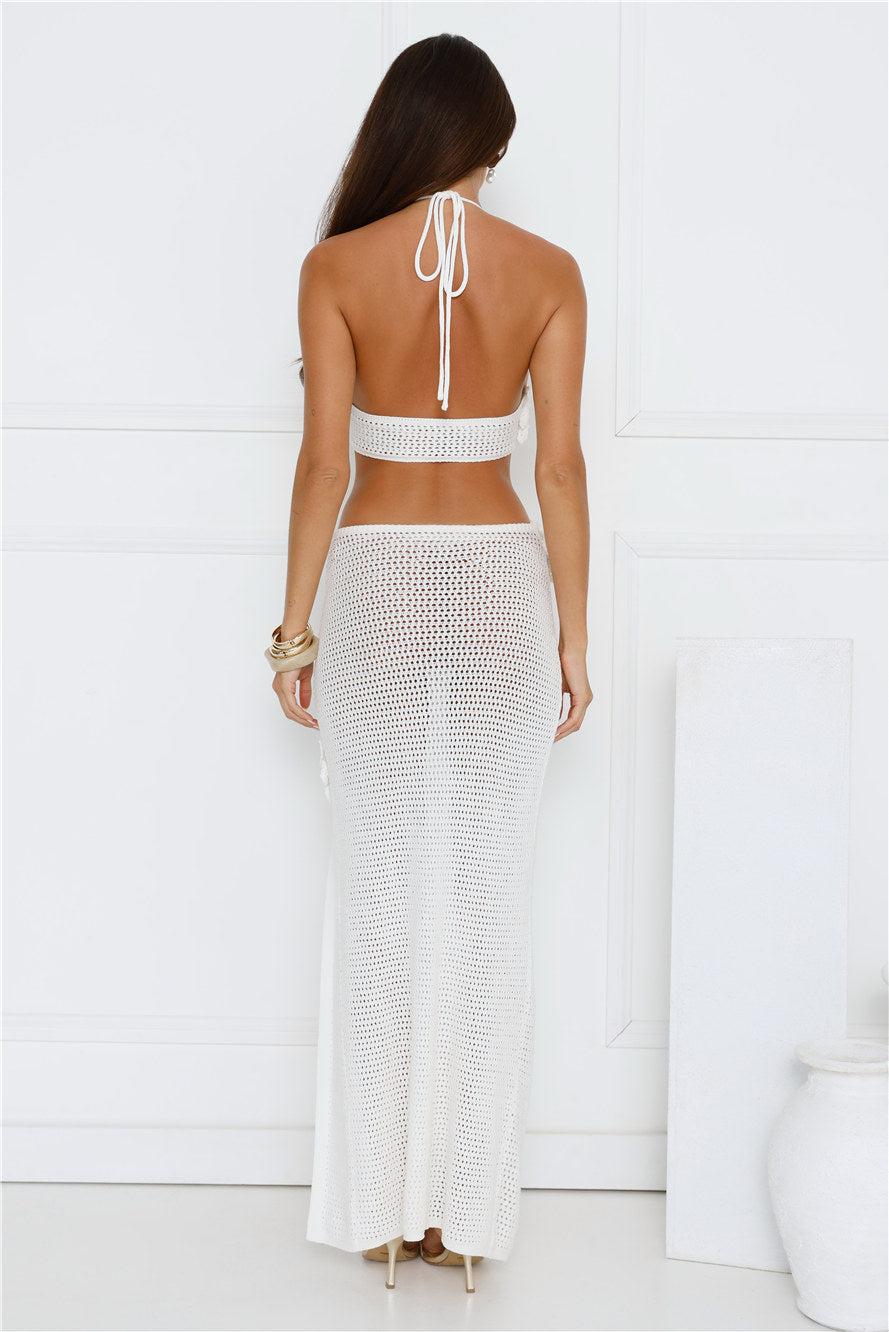 Monaco Sun Knit Halter Maxi Dress White