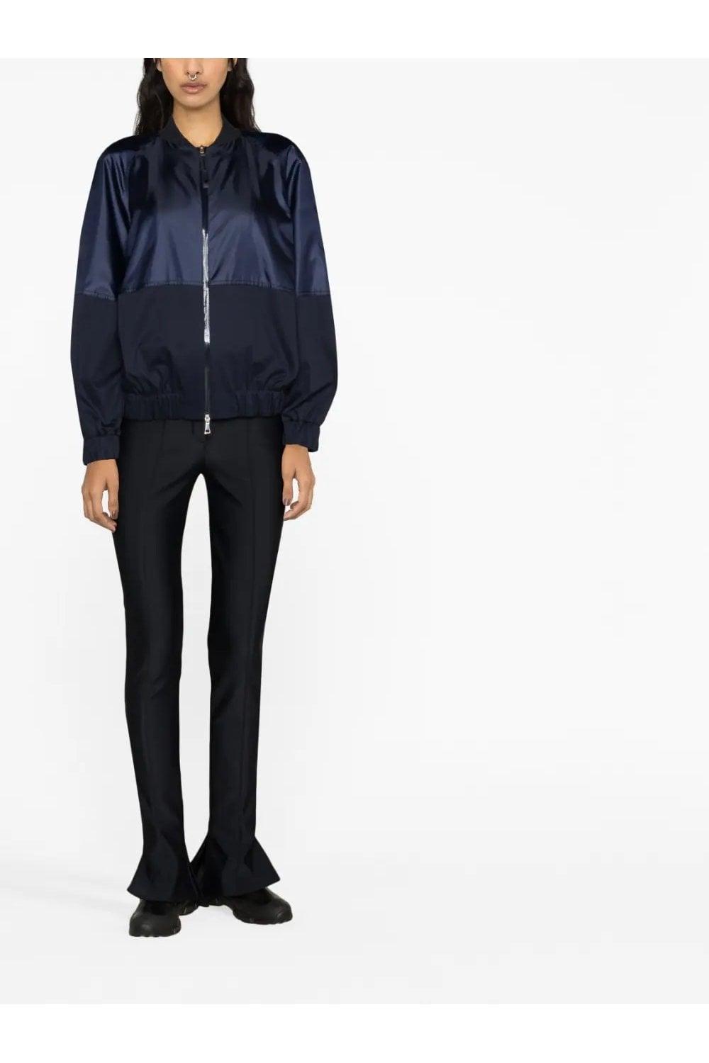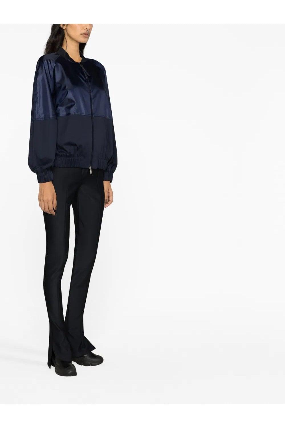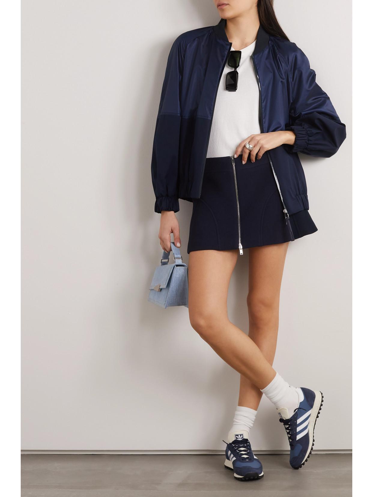 Shop Moncler Gobie Satin And Cotton-blend Twill Bomber Jacket In Navy from 800+ stores, starting at $783. Moncler's 'Gobie' bomber jacket is made from panels of lustrous satin and cotton-blend twill that give it cool textural contrast. It's designed with a rib-knitted collar and has elasticated trims that add to its slouchy feel. Perfect for transitonal weather, it works just as well over anything from T-shirts to cozy sweaters.- For Women.