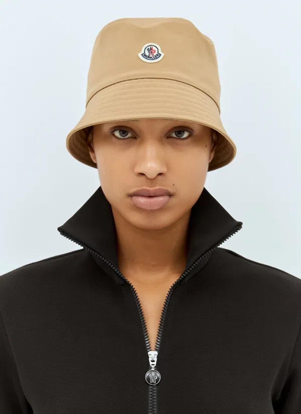 Shop Moncler Logo Patch Narrow Brim Bucket Hat In Beige from 800+ stores, starting at $241. Monclers cotton bucket hat features a simple and practical design with an iconic monogram patch applied to the front, adding a distinctive touch to the model. perfect for a casual look but with a touch of elegance, it represents a versatile and trendy accessory.