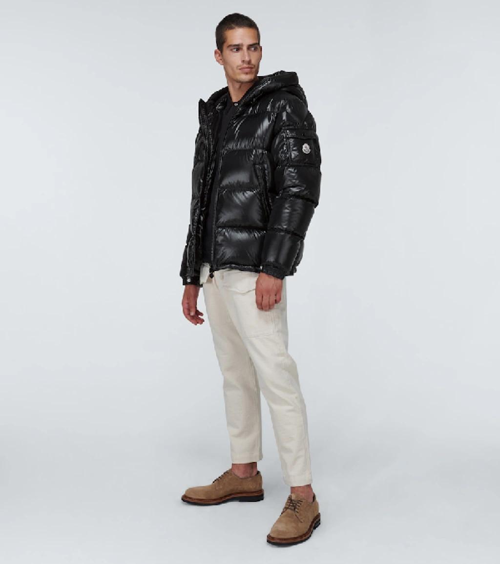 Shop Moncler Men Detachable Hood Padded Down Jacket In Black from 800+ stores, starting at $1546. Long sleeve down-filled quilted nylon satin jacket in black. Bungee-style drawstring at hood. Stand collar. Two-way zip closure at front. Zippered pockets at waist. Flap pocket featuring tricolor felted logo patch at sleeve. Adjustable press-stud tab at elasticized cuffs. Bungee-style drawstring at hem. Zippered pocket at interior. Tonal quilted nylon satin lining. Fully lined. Logo-engraved tonal hardware.Supplier color: BlackFill: 90% goose down, 10% feathers.