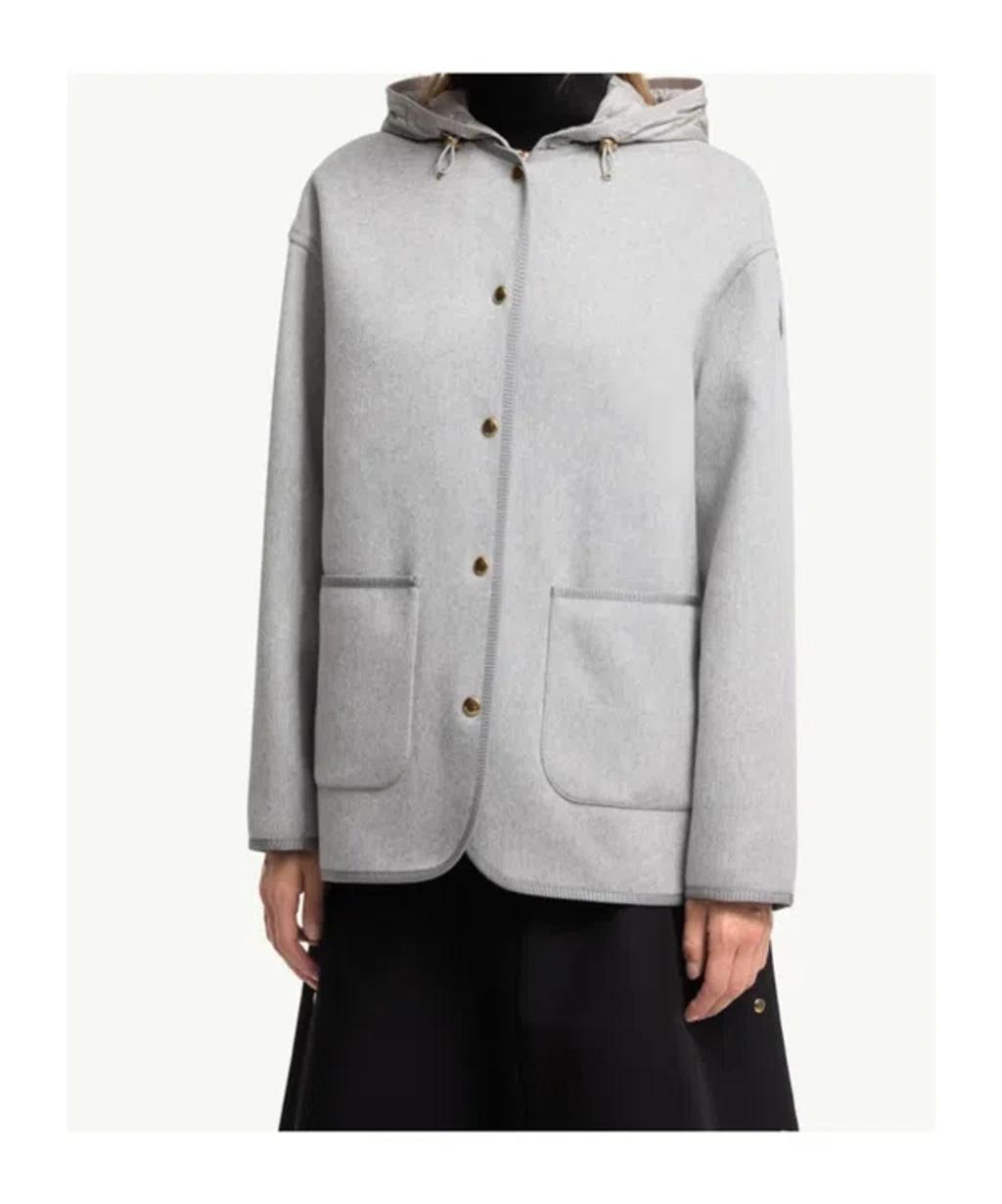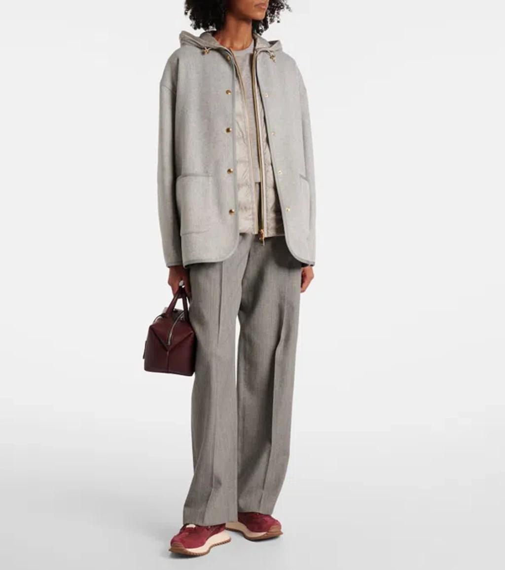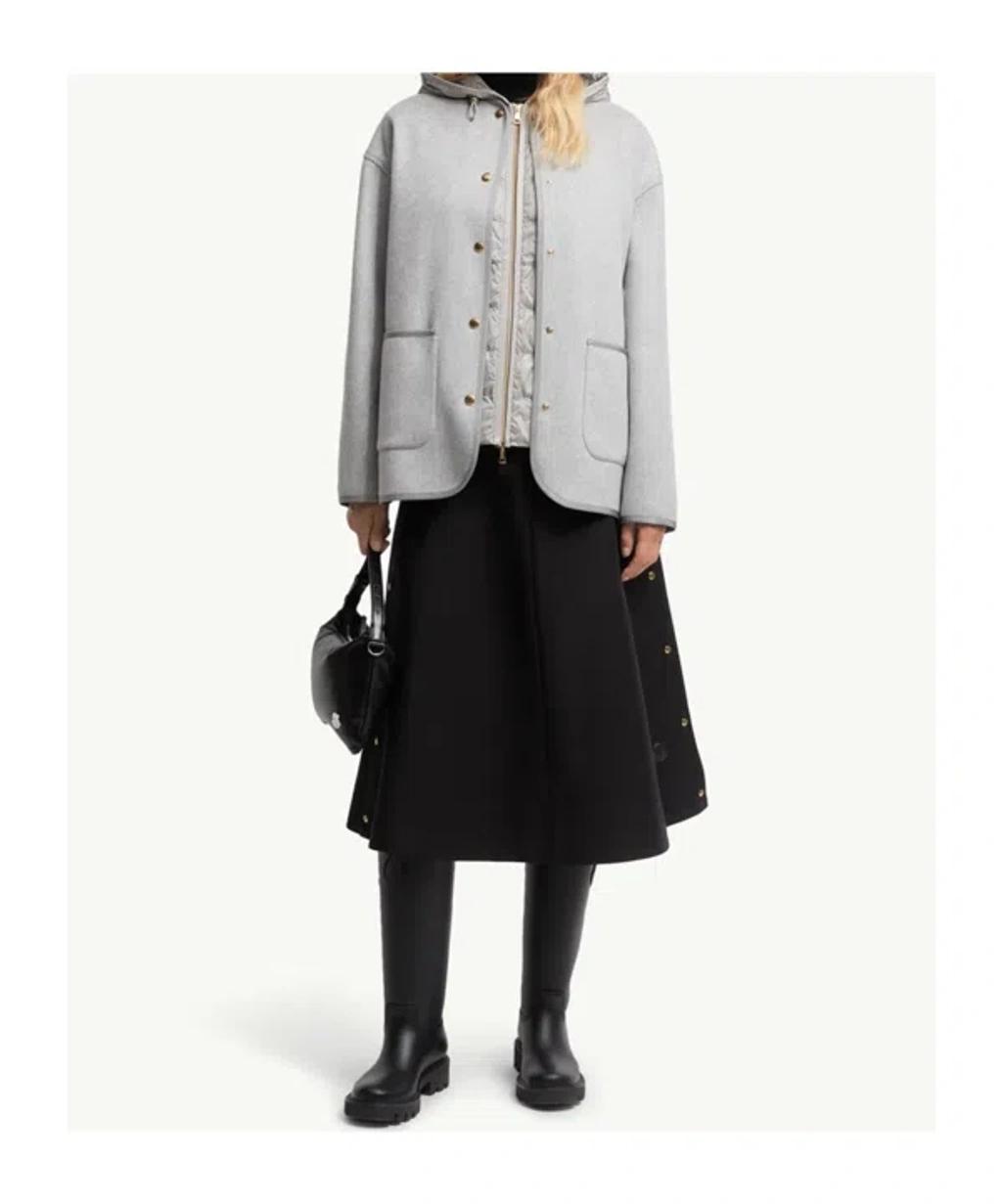 Shop Moncler Reposse Convertible Wool And Cashmere-blend Jacket In Gray from 800+ stores, starting at $2730. Material: 90% wool, 10% cashmere. Care instructions: dry clean. Made in Romania. Designer color name: Grey. Item color: gray. Material II: 100% polyamide. Trim: 100% calf leather. Contains non-textile parts of animal origin. Lining: 100% polyamide. Hood: 100% polyamide. Filling: 90% down, 10% feathers. Closure: two-way zipped front, snap-buttoned fastenings. Drawstring hood. Pockets: zipped pockets, patch pockets. Side slits. Detachable vest. Two-piece set. Wool, Cashmere.