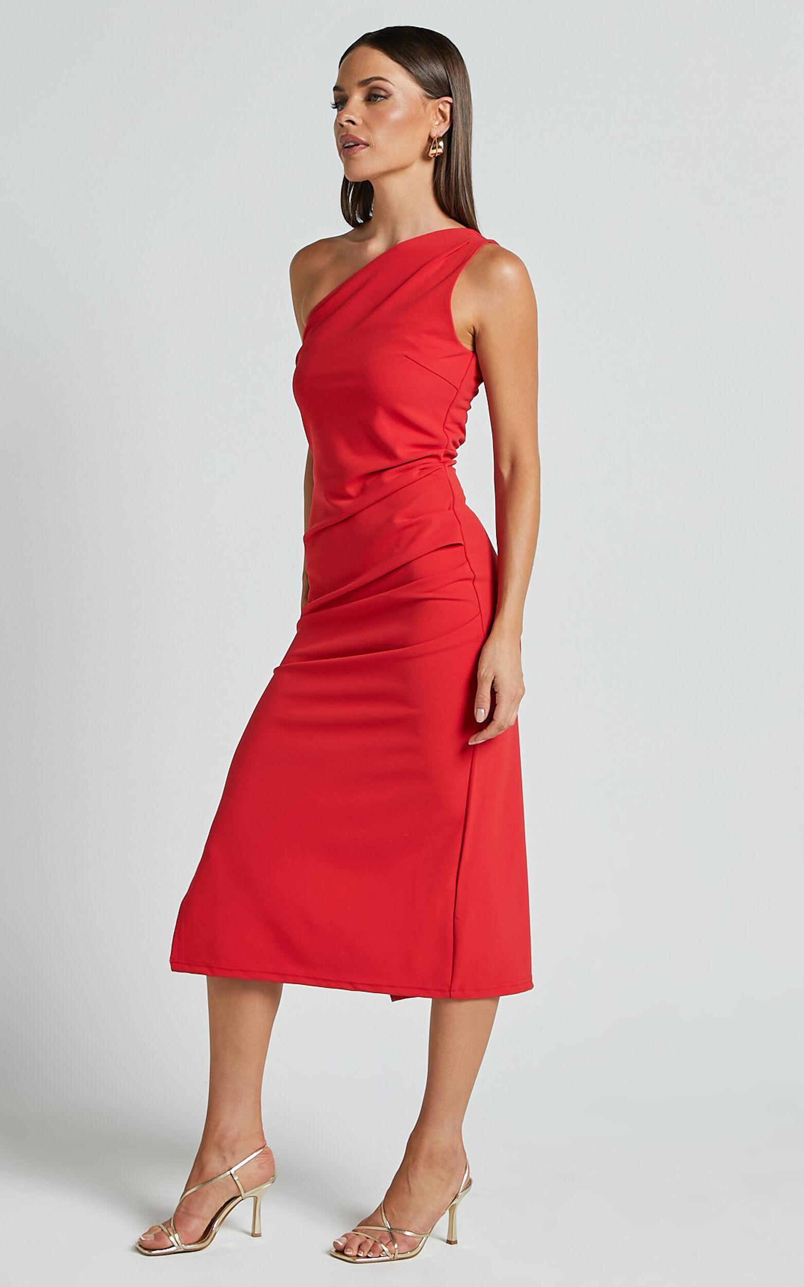 Get ready to turn heads in the stunning Monette Midi Dress! This one-shoulder straight dress is perfect for any formal occasion or wedding guest look. In a vibrant orange-red shade, this midi dress adds a pop of color to your wardrobe. The pencil dress silhouette hugs your curves in all the right places, while the sleeveless design keeps you cool and comfortable. Made from high-quality acrylic fabric, this dress offers both style and durability. Whether you're hitting the dance floor or mingling at a sophisticated event, the Monette Midi Dress will make sure all eyes are on you.Product Details:One Shoulder Pencil DressFormal, Wedding GuestMidi LengthSleevelessAcrylic FabricMaterial and CareAcrylicLow / No stretch