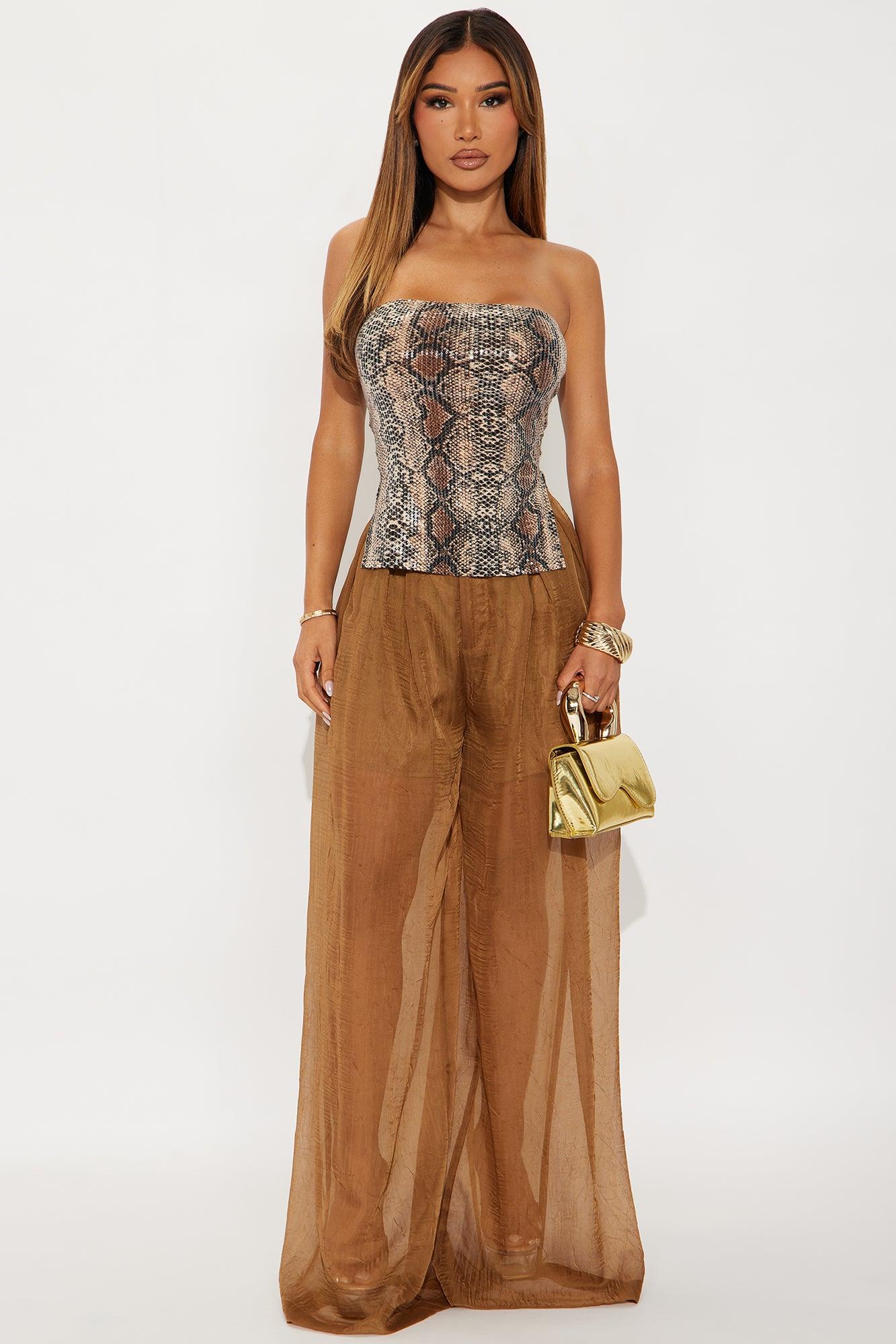 Available In Brown/combo. Tube Top Stretch Strapless Sequin Disclaimer Print Placement May Vary 95% Polyester 5% Spandex Imported