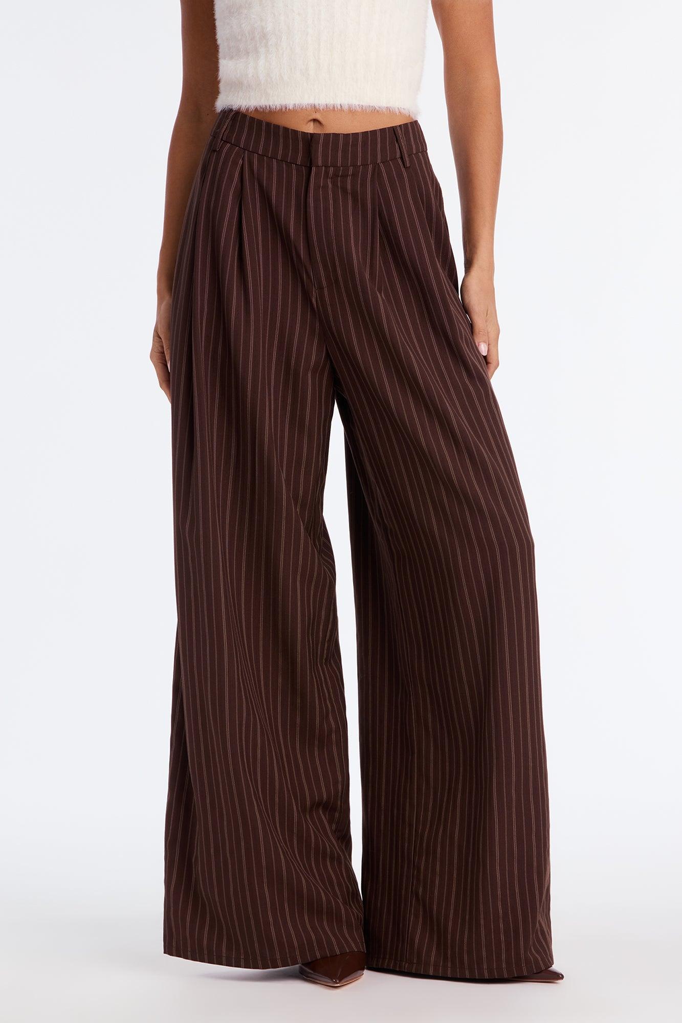 Monica High Waisted Wide Leg Trouser Pant 32″ - Brown/combo Female