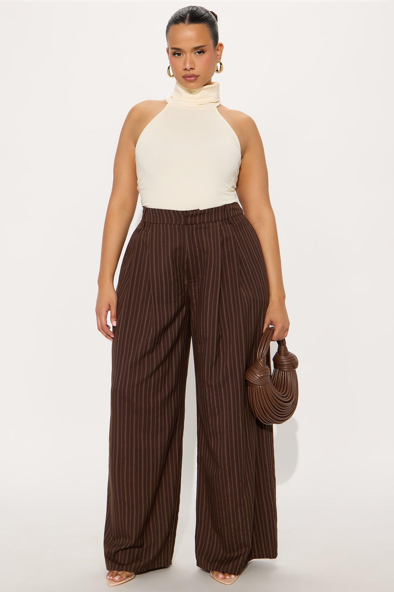 Available In Brown/combo. Wide Leg Trouser Pant High Waisted Hook And Eye Zip Closure Pleated 32" Inseam Non Stretch Self: 80% Polyester 17% Rayon 3% Spandex Imported