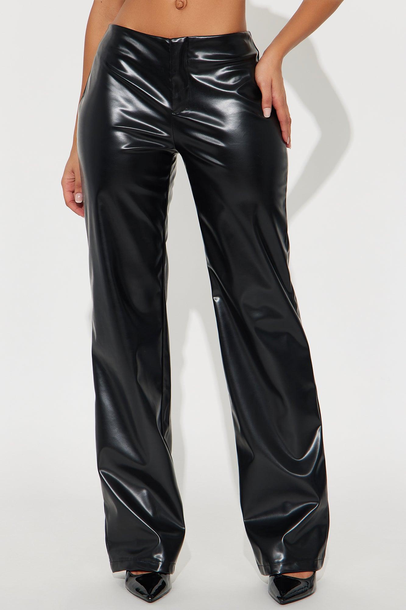 Available In Black And Red. Straight Leg Pant Hook And Eye Closure Low Rise Faux Leather 32" Inseam Low Stretch Self: 55% Polyester 45% Polyurethane Imported