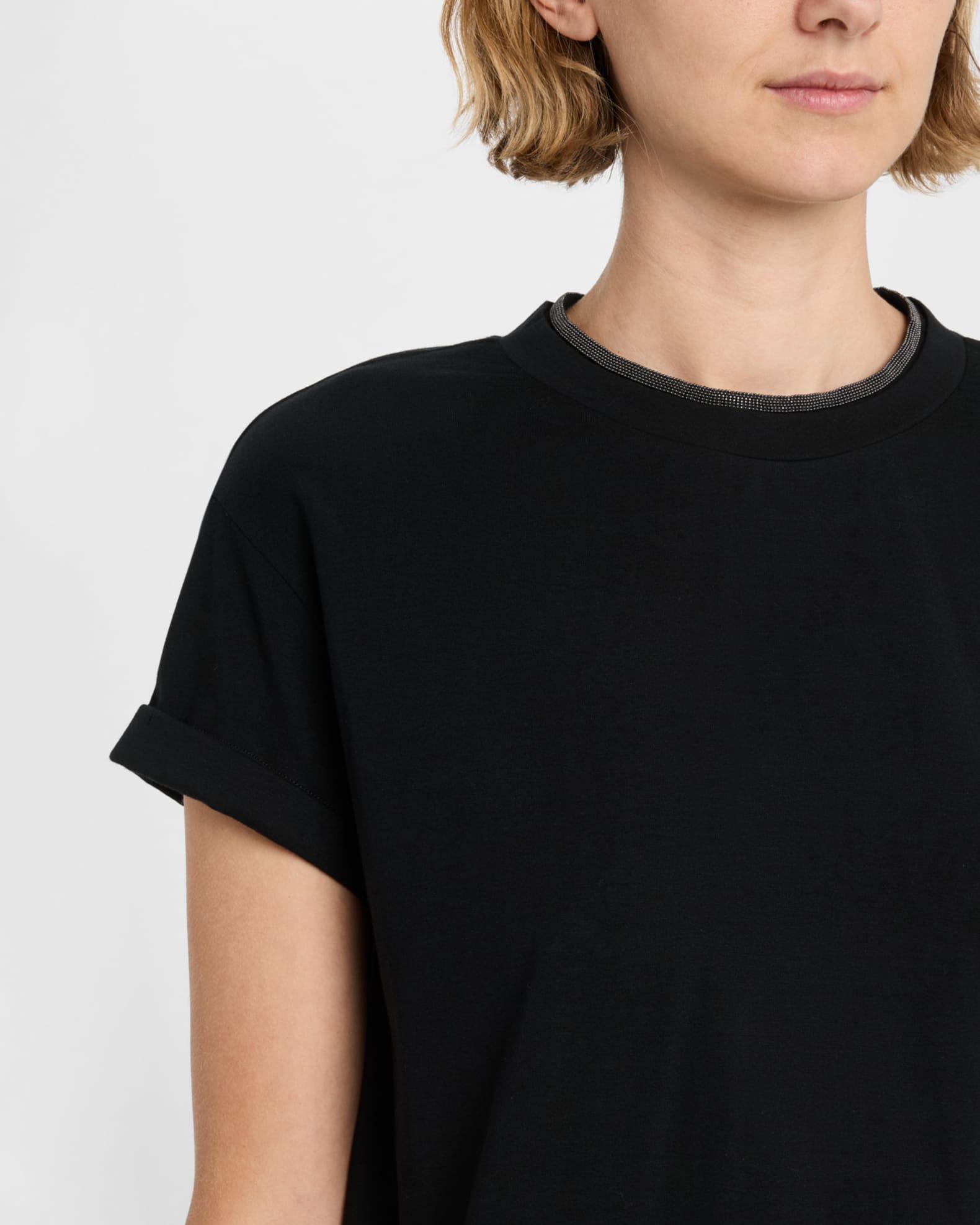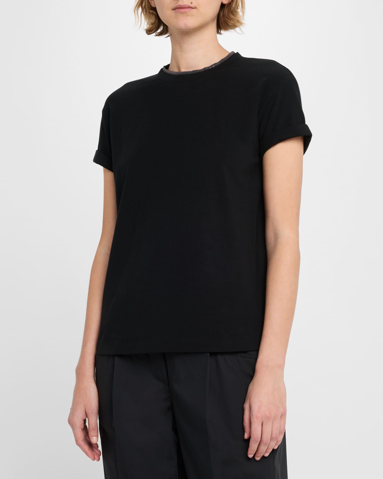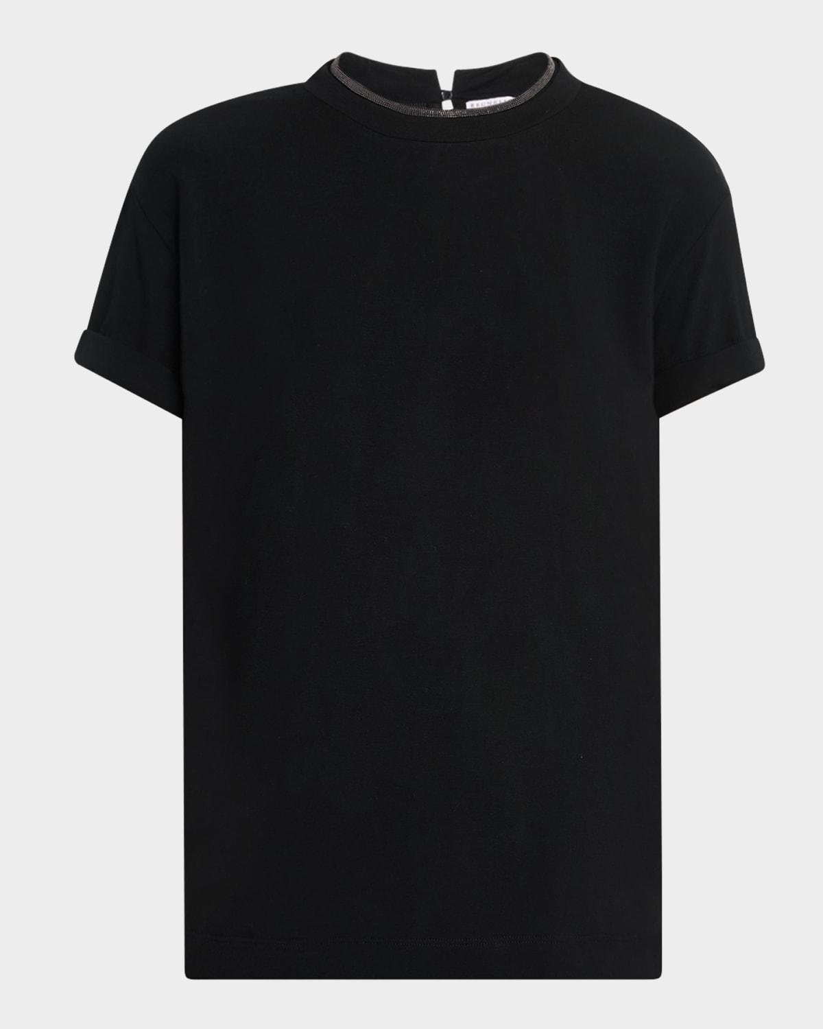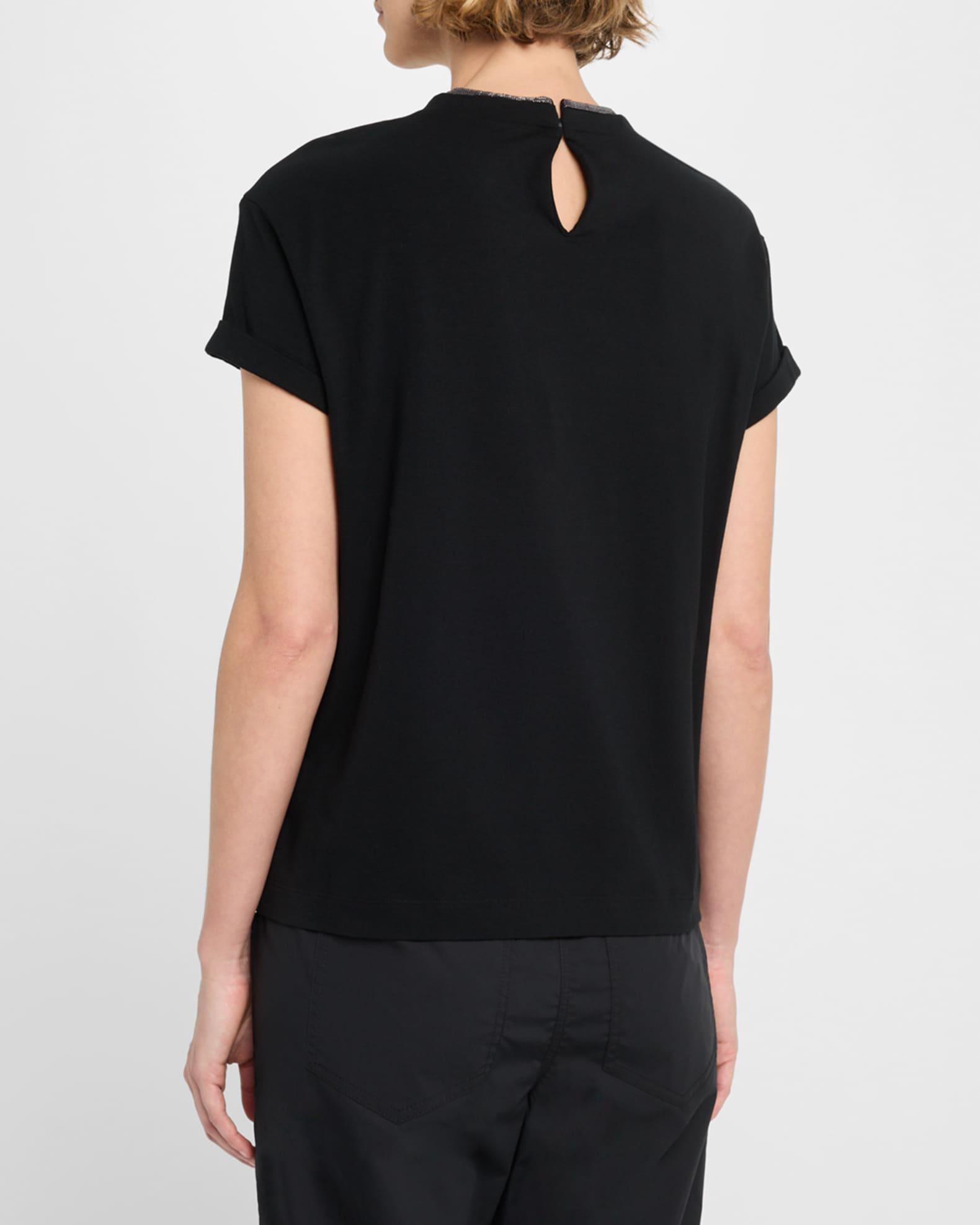 Monili-Neck Short-Sleeved Flat Cotton T-Shirt