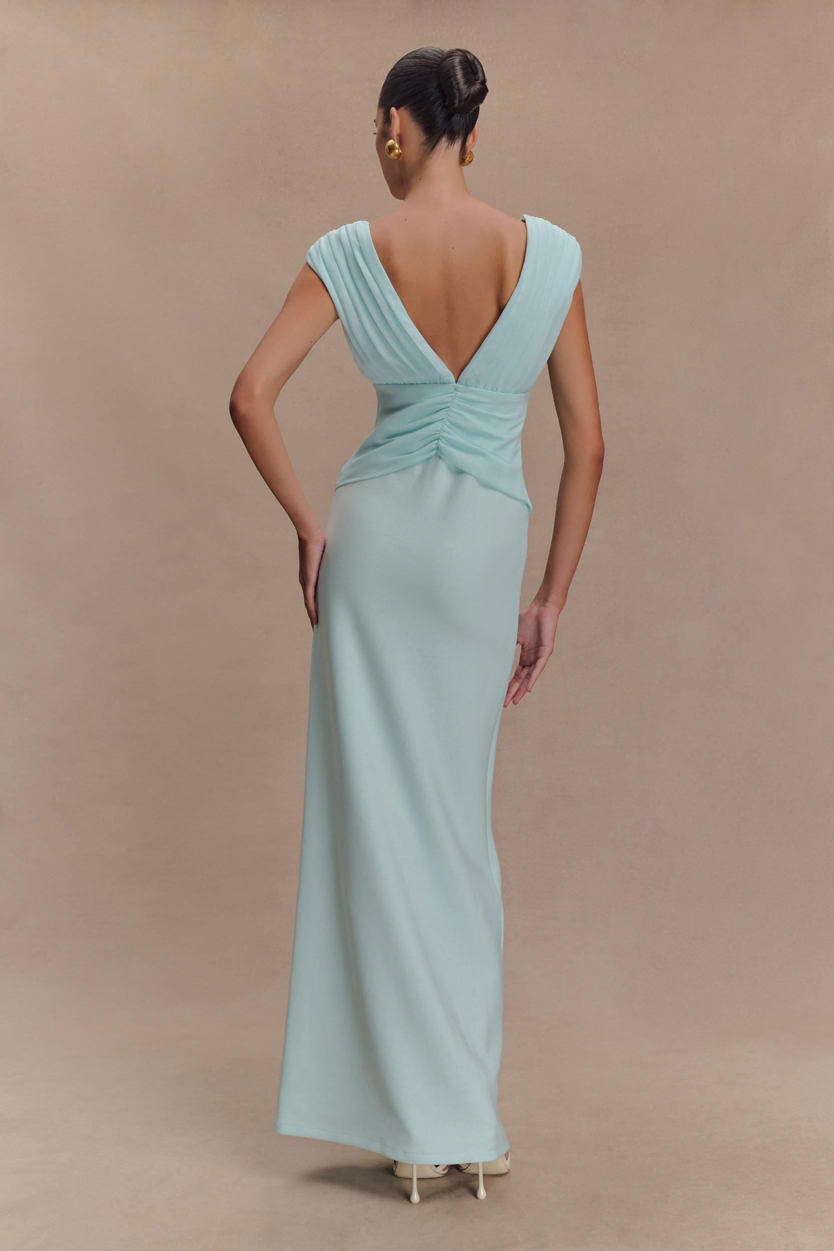 Contrasted class. The MONIQUE Contrast Maxi Dress is a striking blend of elegance and modern design, perfect for making a memorable impression. Featuring a flattering V neckline and an open V back, this dress combines sophistication with a touch of allure. The chiffon upper adds a delicate, airy feel, while ruching detail at the bust and centre front enhances its refined silhouette. The chiffon overlay on the top skirt creates a graceful, flowing effect, and the stretch lower skirt provides both comfort and a sleek fit. With its contrast lower skirt and maxi length, this dress offers a stunning, fashion-forward look suitable for any special occasion.