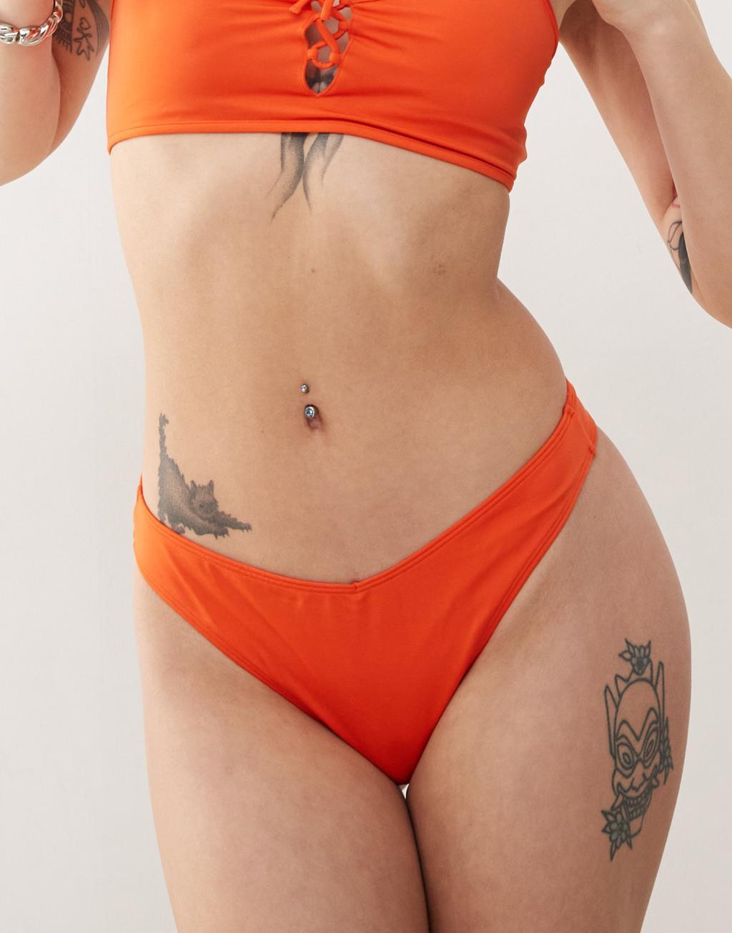 Monki mix and match triangle bikini brief in peach
