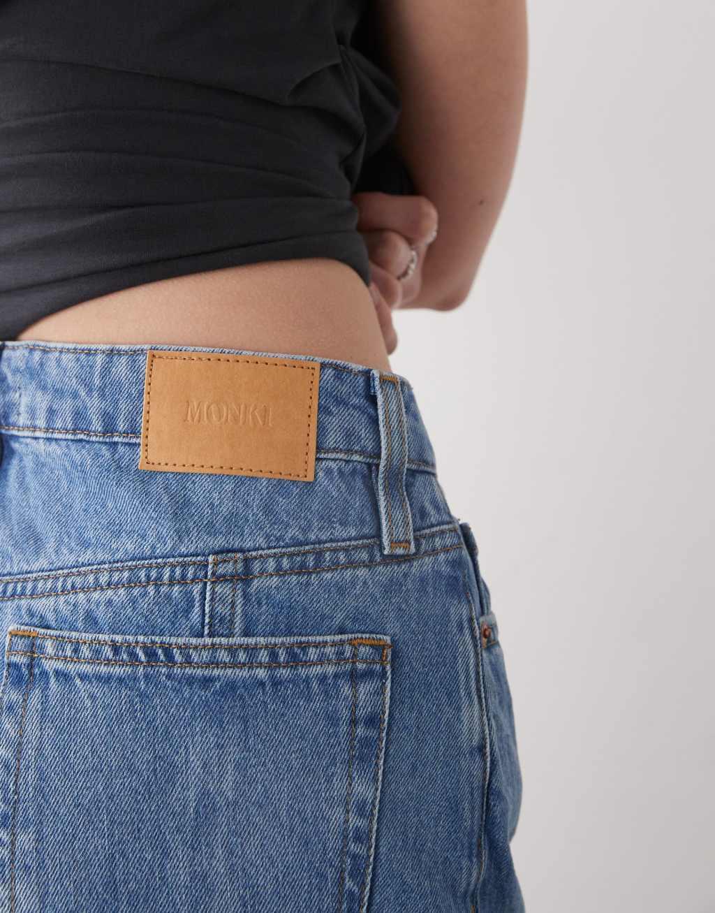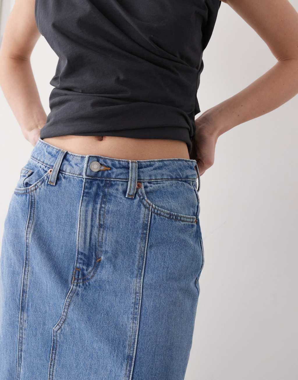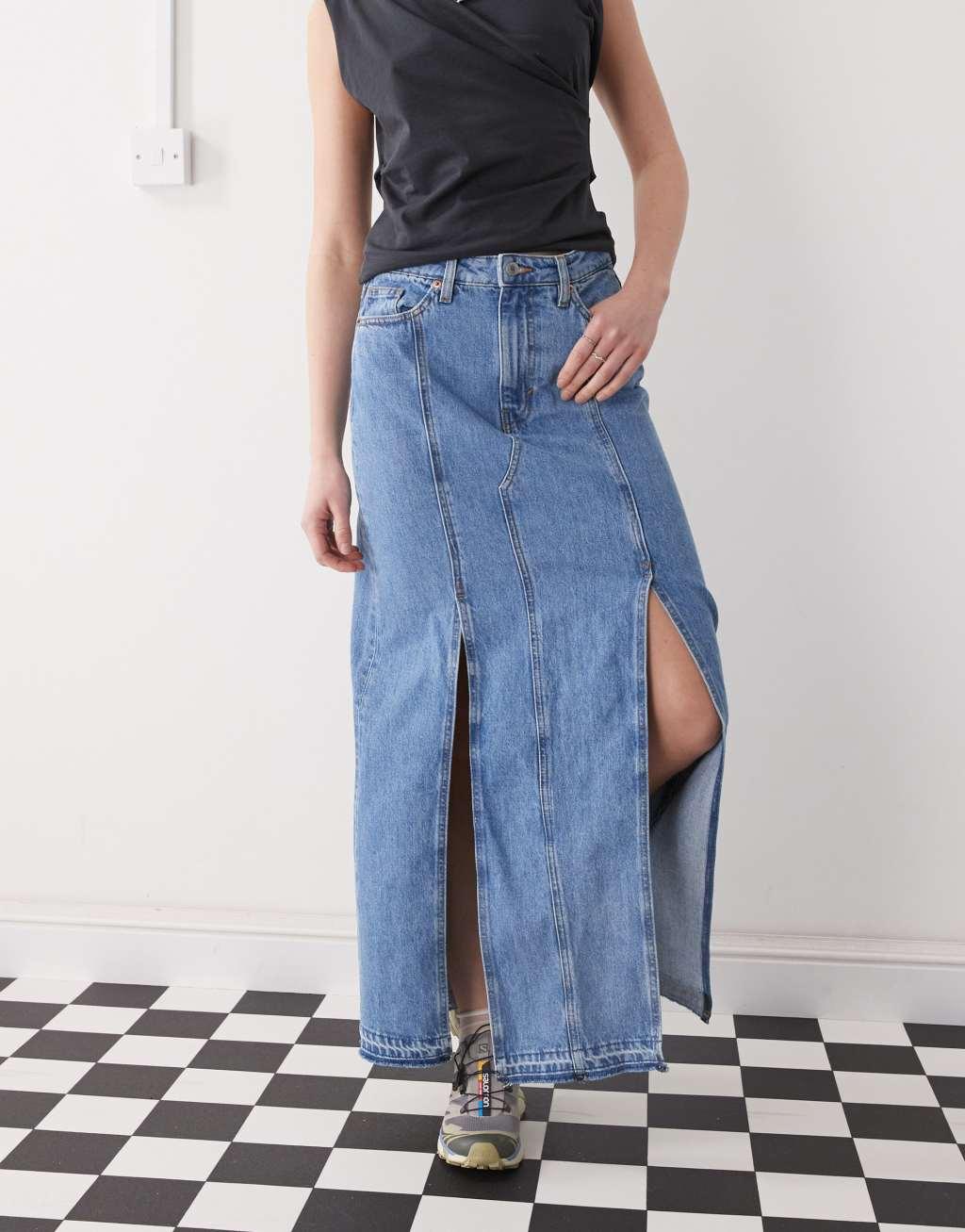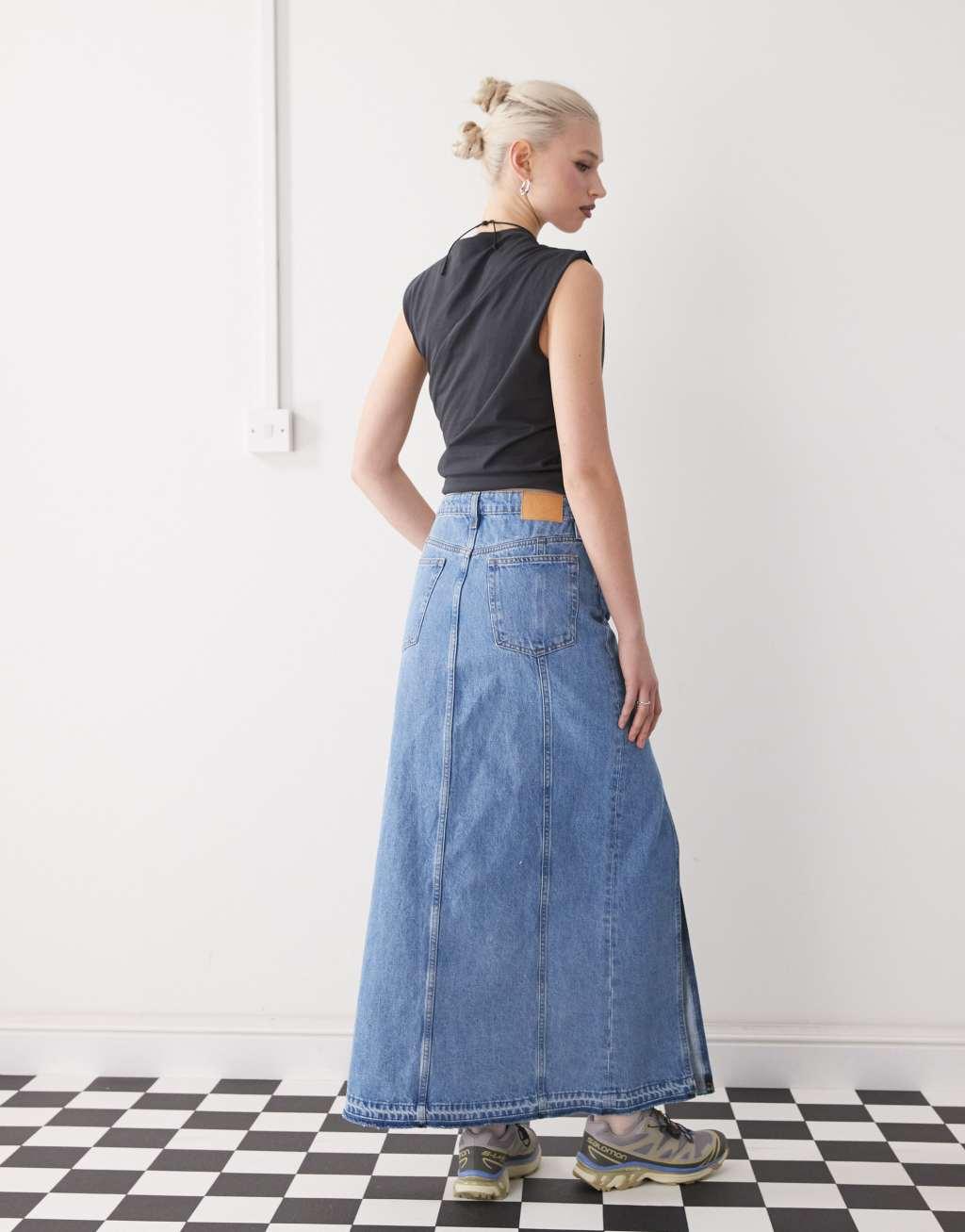 Monki western style denim maxi skirt in vintage blue wash