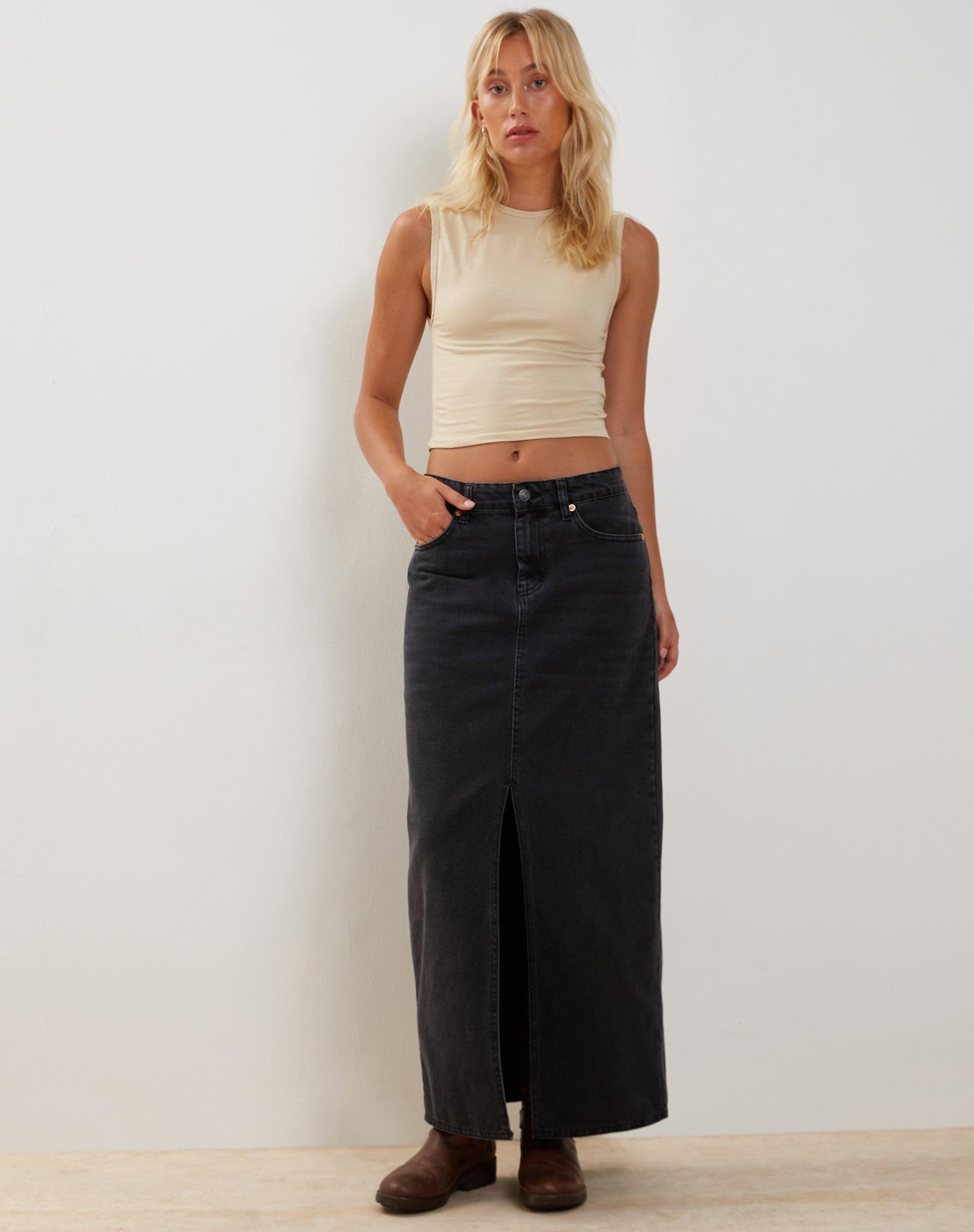 Keep your look simple yet stylish with this super versatile vest. Our Monlo top features a cropped, sleeveless fit with crew neckline in neutral coconut milk. We love to style with our Low Rise Maxi Skirt. MODEL WEARS:SMALL - MODEL HEIGHT:5'7