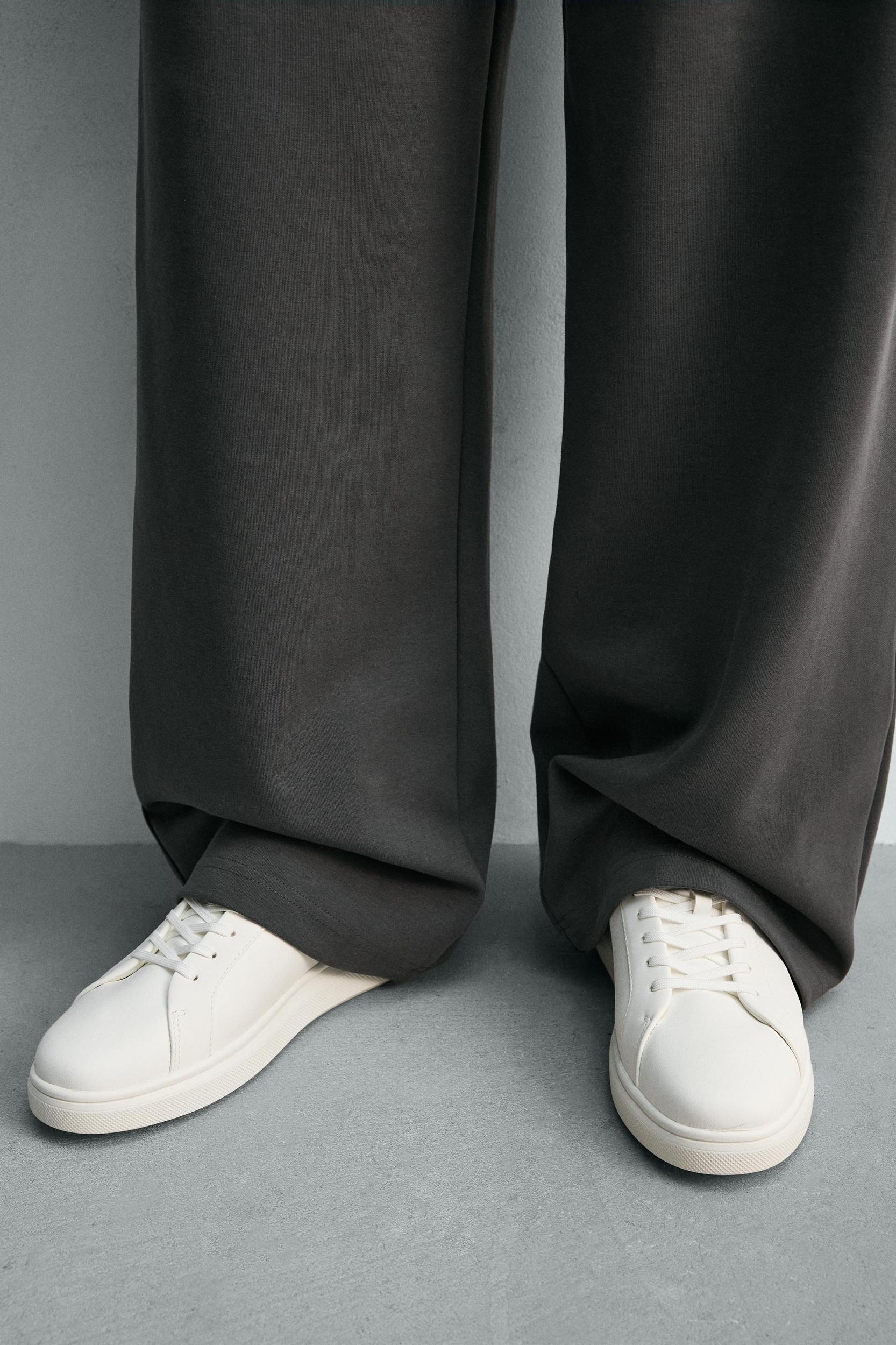 Monochromatic sneakers. Plain upper part. Lacing with seven pairs of eyelets. Chunky soles.