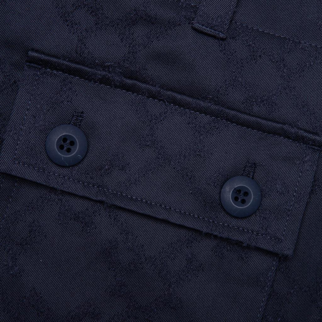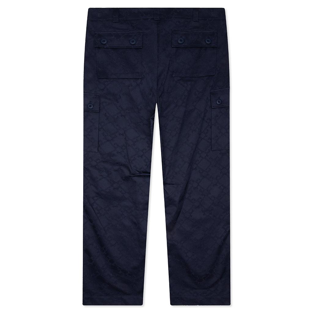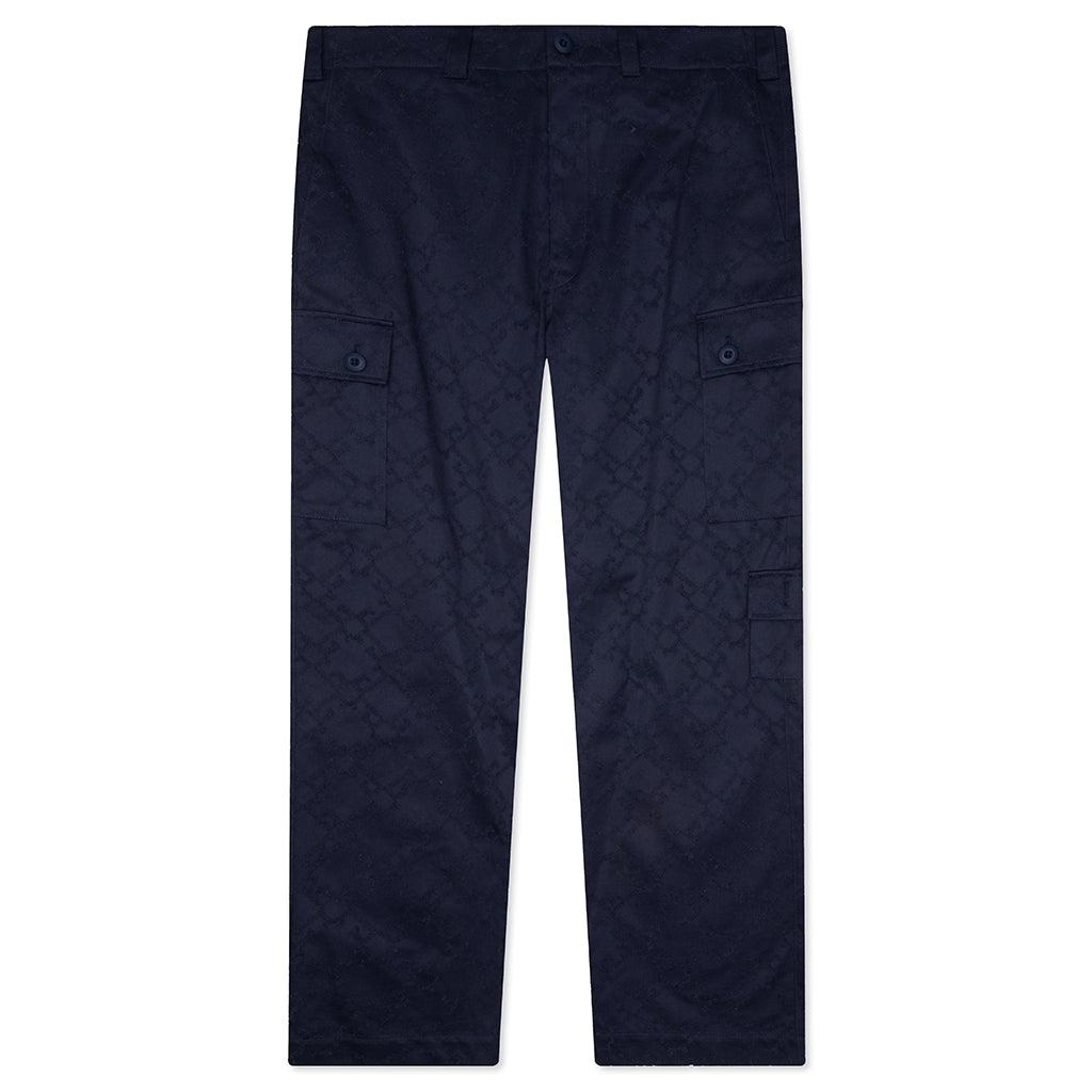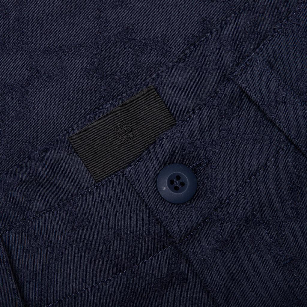 The Monogram 72 Cargo Pants from GIVENCHY is constructed from 100% pure cotton and offers a relaxed fit. They feature a zipper fly with button closure, two front pockets, three flap pockets on the sides, and two flap back pockets. The signature Monogram 72 pattern is showcased through a refined topstitching technique, subtly elevating its utilitarian design. 100% Cotton Relaxed fit Textured Monogram 72 pattern Zipper fly with button closure Two front pockets Three flap pockets on the sides Two flap back pockets Drawstrings at the hems Made in Italy Style No: BM51JQ15XE-410