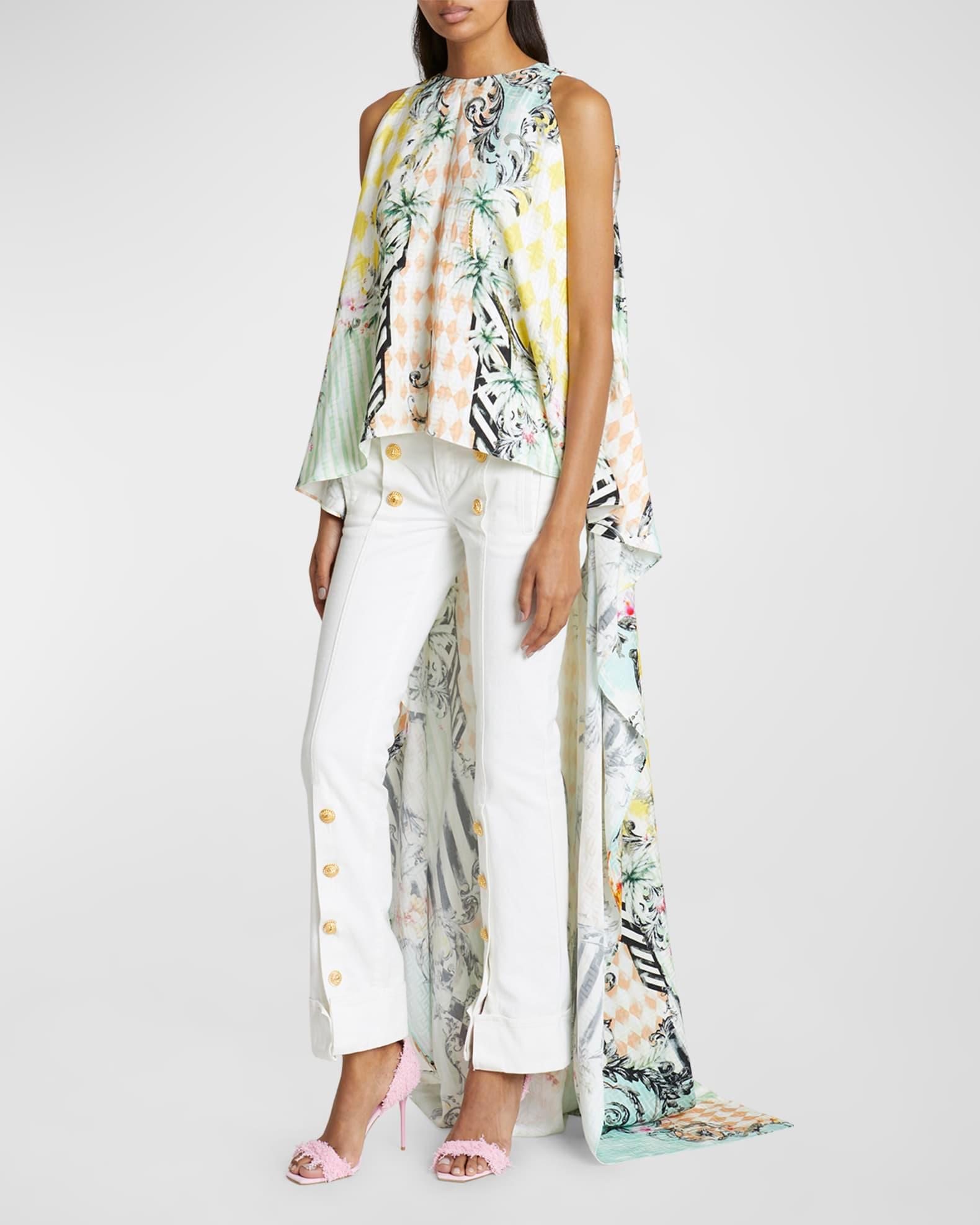 Monogram Baroque-Print Sleeveless High-Low Kaftan