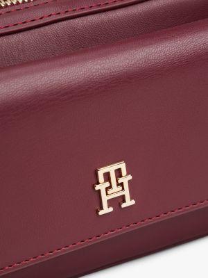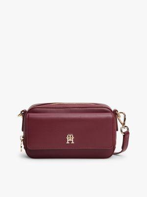 Tommy Hilfiger women's bag. Elevate any outfit with this chic crossbody bag, designed with a smooth finish and gold-tone TH monogram hardware. It features a roomy zip main compartment and an adjustable shoulder strap for all your daily toting needs.