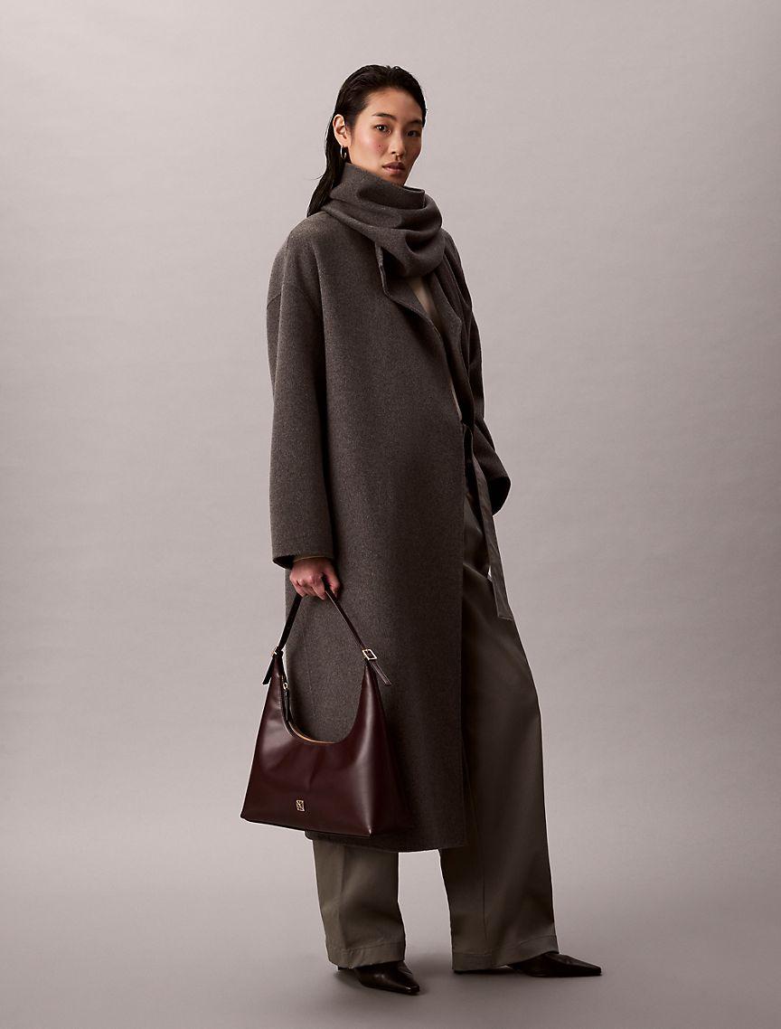 Structured dimensions and thoughtful details. Versatile accessories for a modern lifestyle. Sleek in curved silhouette, this timeless shoulder bag is made from soft leather. Made with slim strap that adjusts to a personalized fit. Detailed with distinct monogram logo hardware at the front.