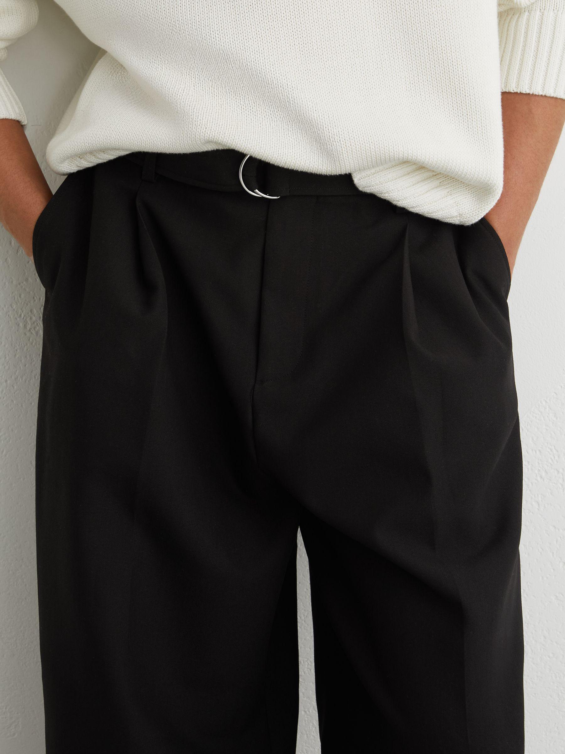 Expertly tailored with a relaxed, wide-leg silhouette, the Atwell trousers combine effortless ease with modern refinement. Front pleats and a coordinating D-ring belt add subtle structure, making them a versatile addition to any smart-casual wardrobe. Crafted with stretch. Relaxed fit. D-ring belt. Front pleats. Hook-and-bar with zip.