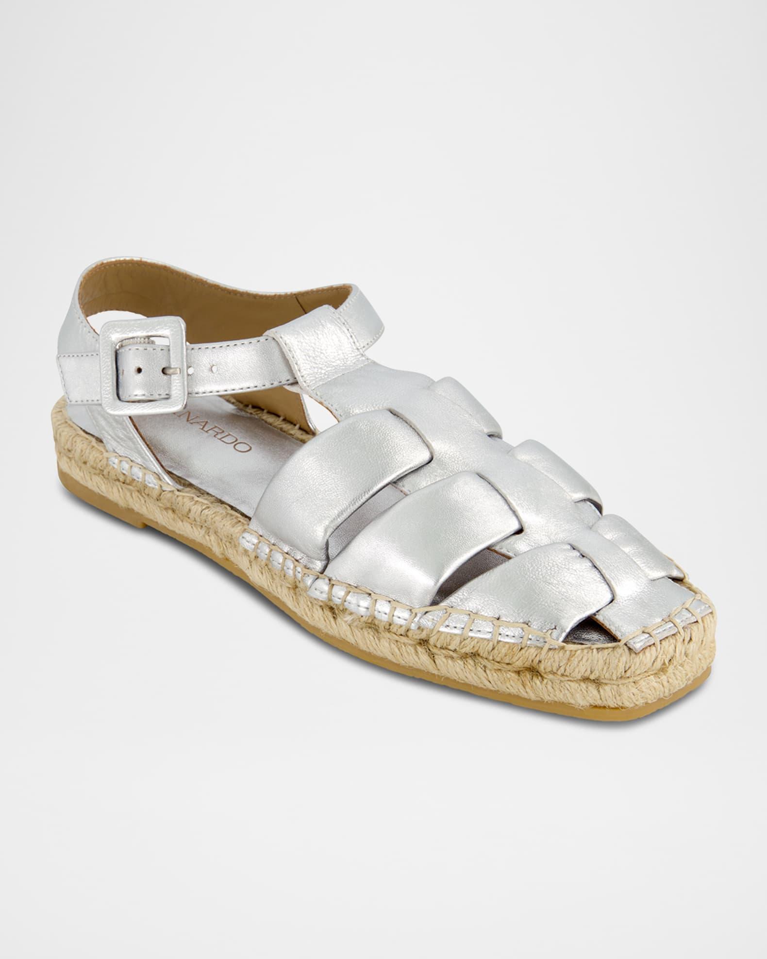 Bernardo "Monri" goes with the flow. Preserving yet evolving tradition, this fisherman sandal pairs its defining metallic leather upper with a time-honored, jute-wrapped espadrille sole, taking the historical style to a fresh place. 1.00 in / 25 mm braided-jute flatform heel Open toe Caged vamp Adjustable ankle strap Rubber outsole Lining: Leather Professional cleaning recommended Made in Brazil