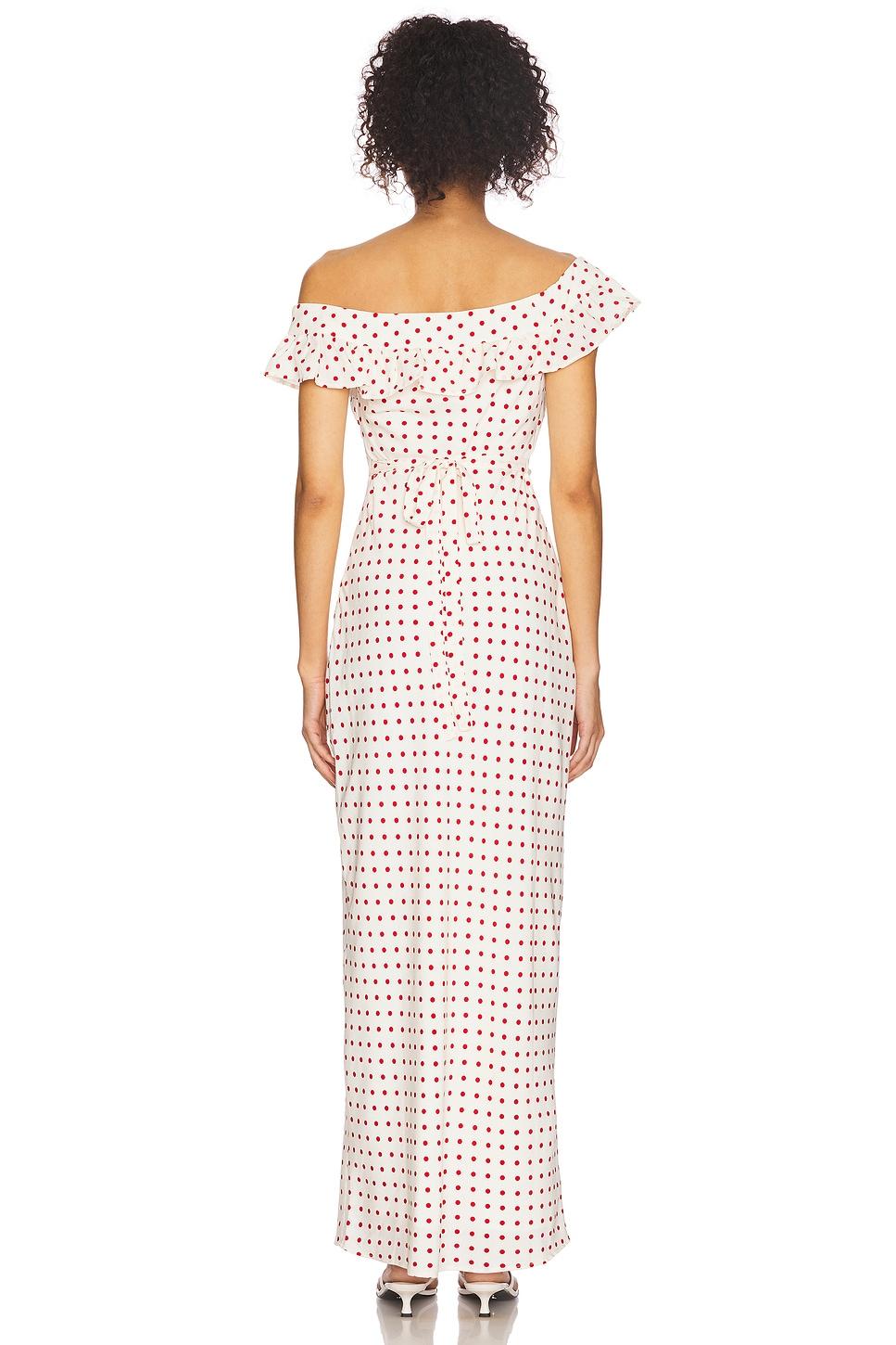 Self: 100% polyesterLining: 90% polyester, 10% elastane. Hand wash. Fully lined. Hidden side zip closure. One shoulder styling. Attached back tie closure. Midweight crepe fabric. Made in China. Revolve Style No. MOTO-WD683. Manufacturer Style No. MTD10007 U25.