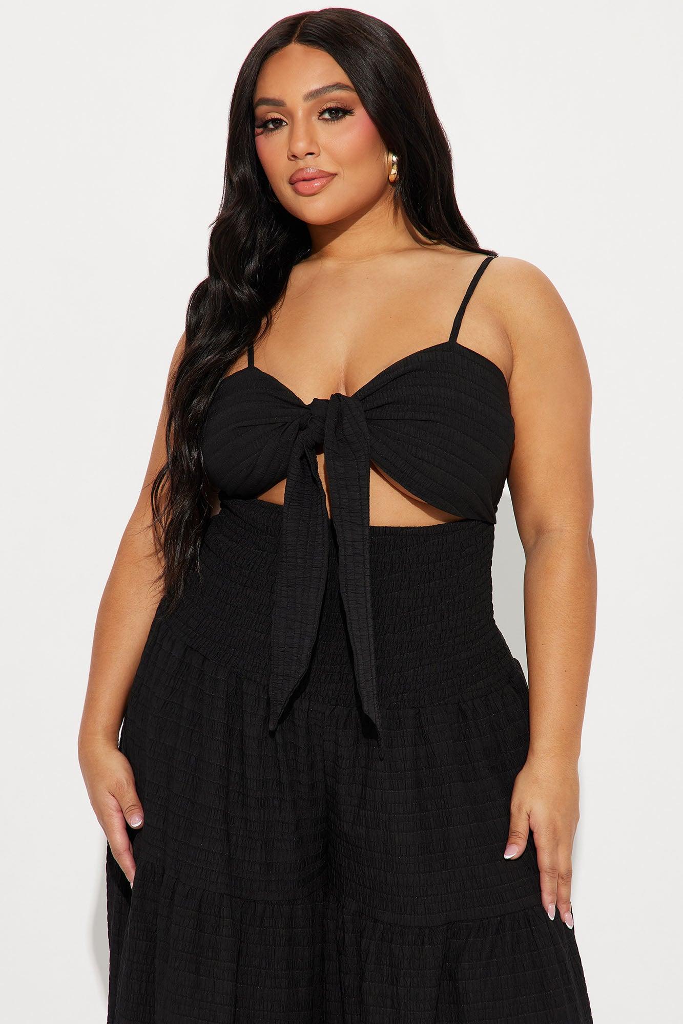Stay cool and chic in our new Montego Bay Jumpsuit! With its sleek black color, fun spaghetti straps, and sweetheart neckline, this jumpsuit is perfect for any occasion. The cut out detail and knot at the waist add a touch of flair, while the wide leg and full length shape give a flattering fit. Perfect for a day out with friends or a night on the town, this jumpsuit is sure to turn heads. Available In Black, Blue, Cream And Orange. Jumpsuit Adjustable Spaghetti Straps Sweetheart Neckline Cut Out Smocked Detail Extreme Wide Leg Non Stretch Inseam= 33" Self: 58% Rayon , 38% Polyester , 4% Spandex Lining: 100% Polyester Imported California Proposition 65WARNING: Cancer and Reproductive Harm - www.P65Warnings.ca.gov.