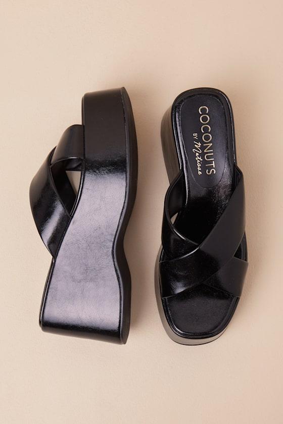 For a flirty 90s-chic vibe, slip into these perfectly chunky platform sandals from Coconuts by Matisse. Shaped by textured faux leather with an effortless shine, the slide-on silhouette features a crisscrossing vamp atop a rounded footbed, creating a peep-toe that is ready to show off your pedicures all season long. Available in whole sizes only.