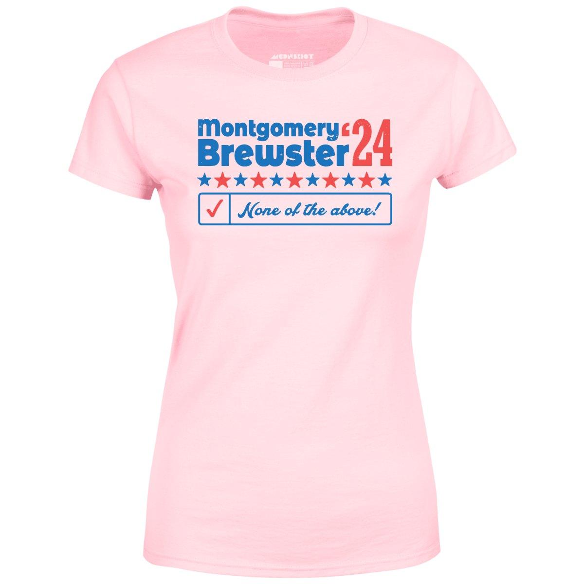 None of the above! A funny campaign parody spoof inspired by Montgomery Brewster from Brewsters Millions. Printed on our super soft 100% ringspun & combed cotton women's T-Shirt. Or upgrade to our Luxury 52/48 cotton/poly vintage heather edition for an even softer classic look. We print & ship all of our high quality graphic tees in the USA.