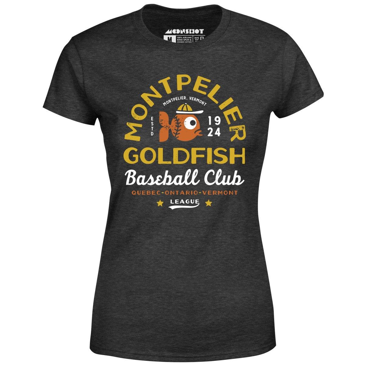 The Montpelier Goldfish is a defunct minor league baseball team that was formed in 1924 and based in Montpelier, Vermont. They played in the Quebec-Ontario-Vermont league. This design is part of our old school retro baseball tees inspired by the vintage and now defunct Minor League Baseball teams of yesteryear. Printed on our super soft 100% ringspun & combed cotton women's T-Shirt. Or upgrade to our Luxury 52/48 cotton/poly vintage heather edition for an even softer classic look. We print & ship all of our high quality graphic tees in the USA.