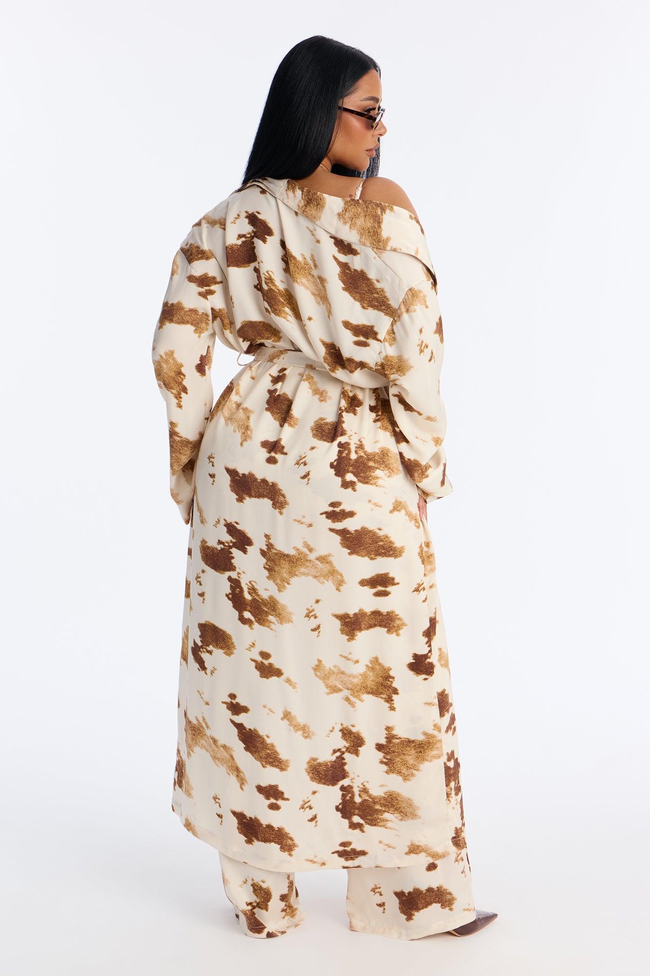 Mood Setter Satin Cow Print 3 Piece Pant Set - Cream/combo Female