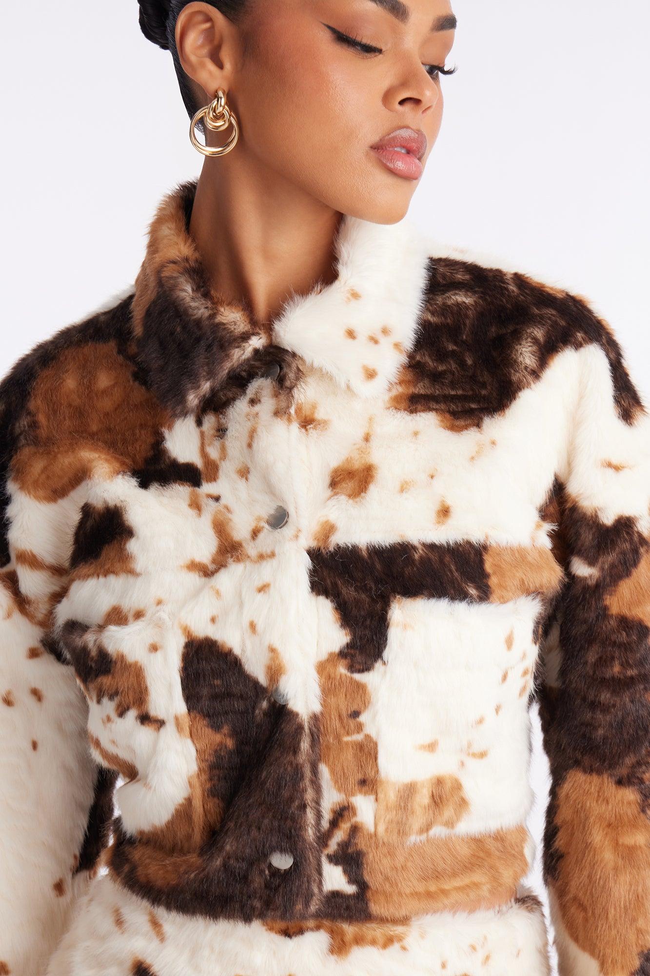 Mood Up Faux Fur Cow Print Skirt Set - Brown/combo Female