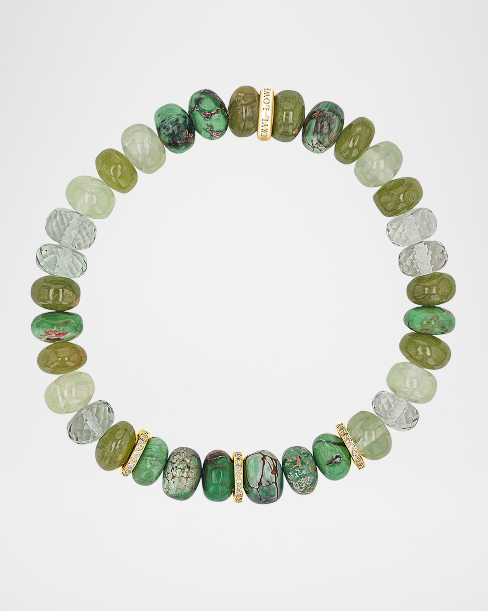 Moody Green Mix Bead Bracelet with 14K Yellow Gold and Diamond Rondelles