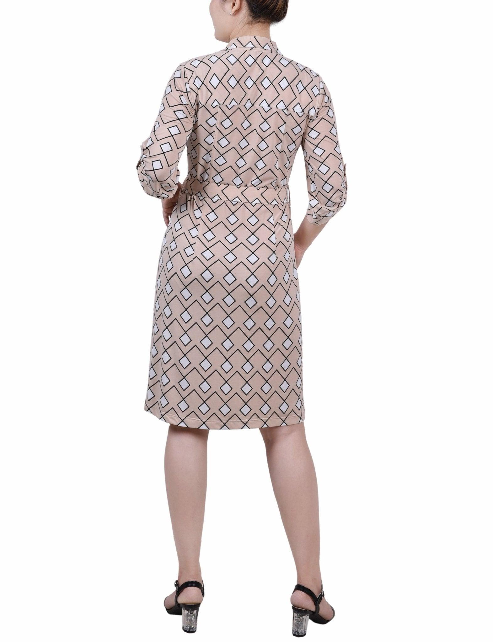 Moonlight Diamonds Belted Roll Tab Zip Front Shirtdress - Petite