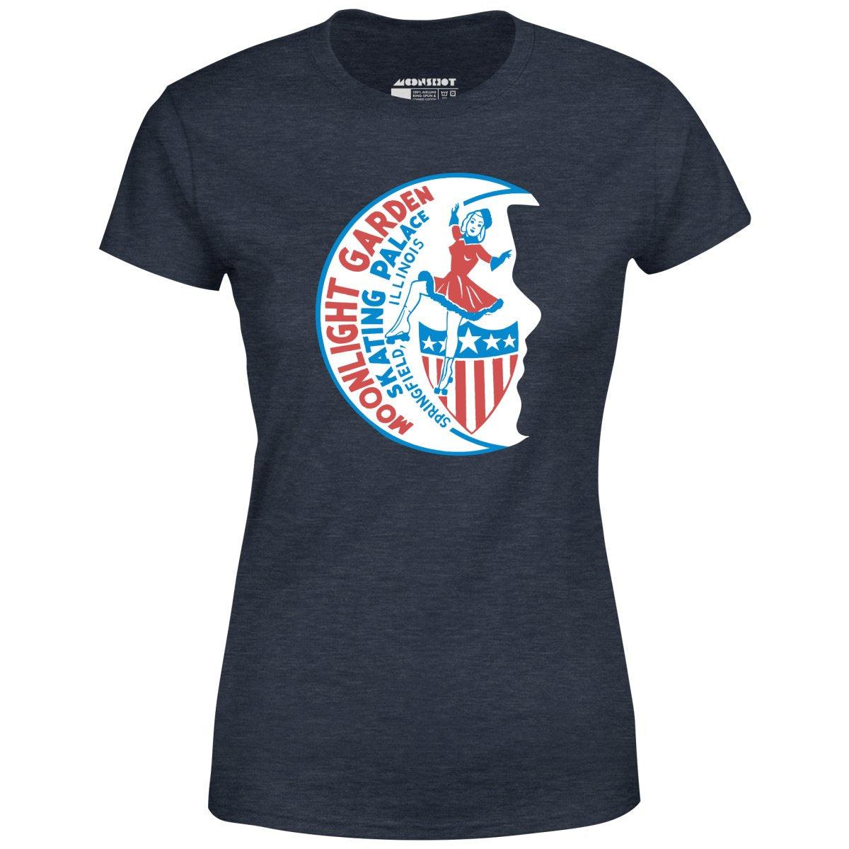 The Moonlight Garden Skating Palace was roller rink located in Springfield, Illinois. This retro design is part of our iconic old school roller skating rink collection. Inspired by the classic, vintage defunct roller skating rinks of yesteryear. Printed on our super soft 100% ringspun & combed cotton women's T-Shirt. Or upgrade to our Luxury 52/48 cotton/poly vintage heather edition for an even softer classic look. We print & ship all of our high quality graphic tees in the USA.