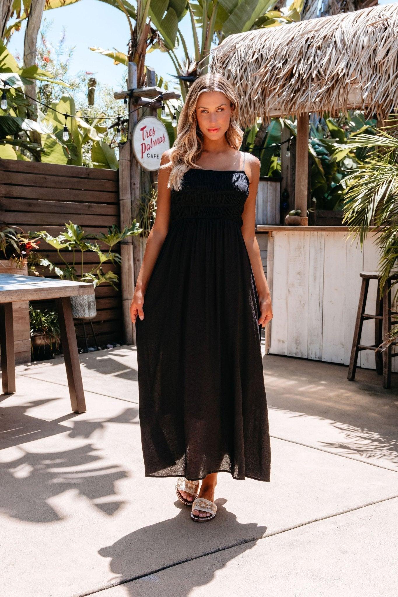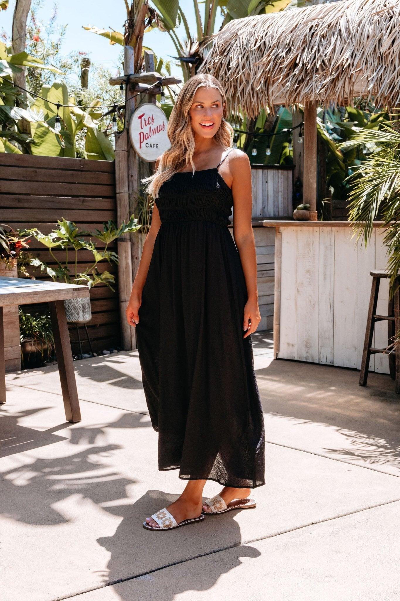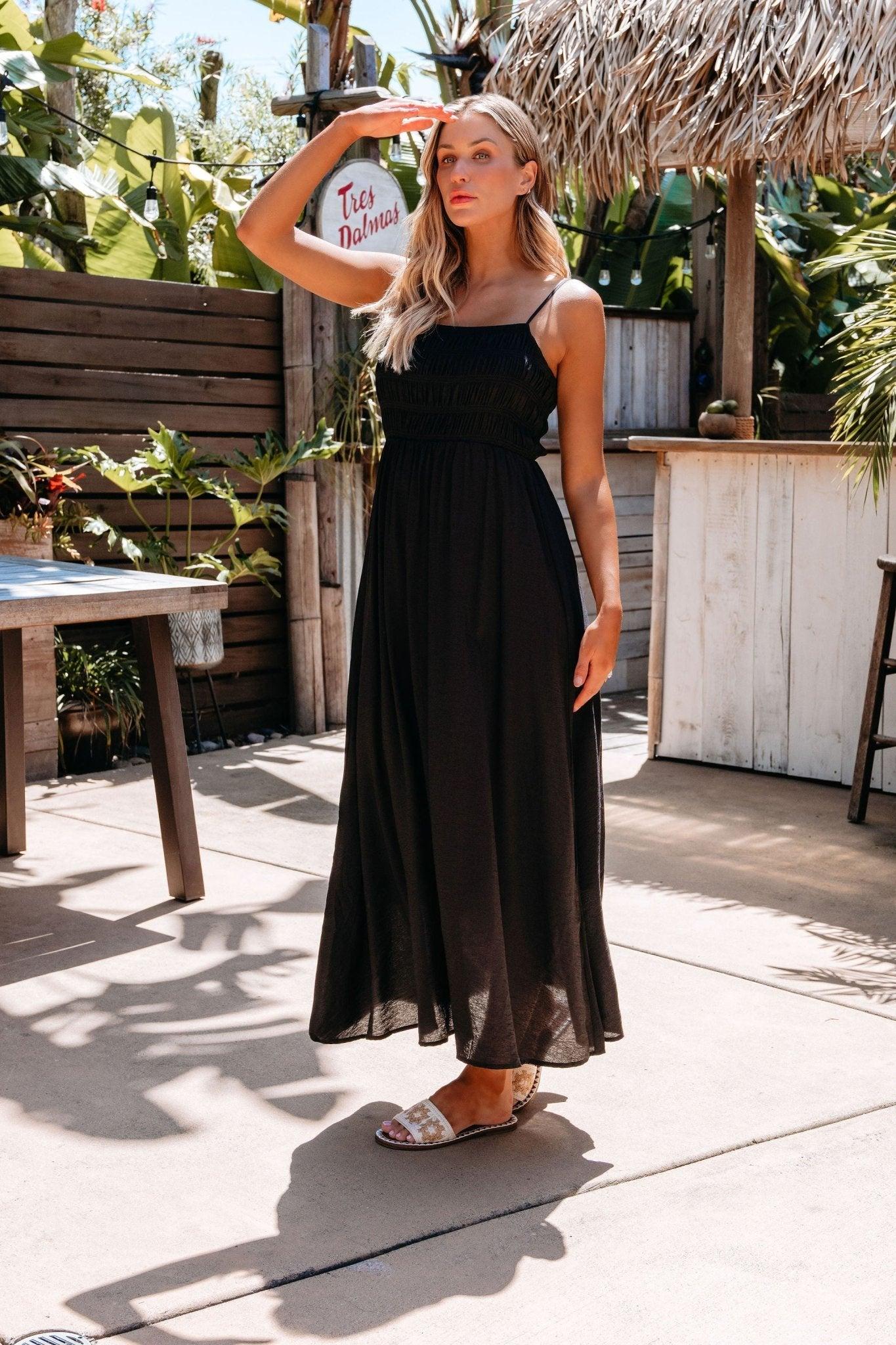 Step into timeless elegance with the Moonlight Hour Black Maxi! Designed with adjustable straps and a ruched bodice for a flattering, feminine fit, this dress features a back tie closure and a soft, flowy silhouette. Fully lined for comfort and crafted in a lightweight, breezy fabric, it’s your go-to for romantic evenings, special celebrations, or moonlit getaways.