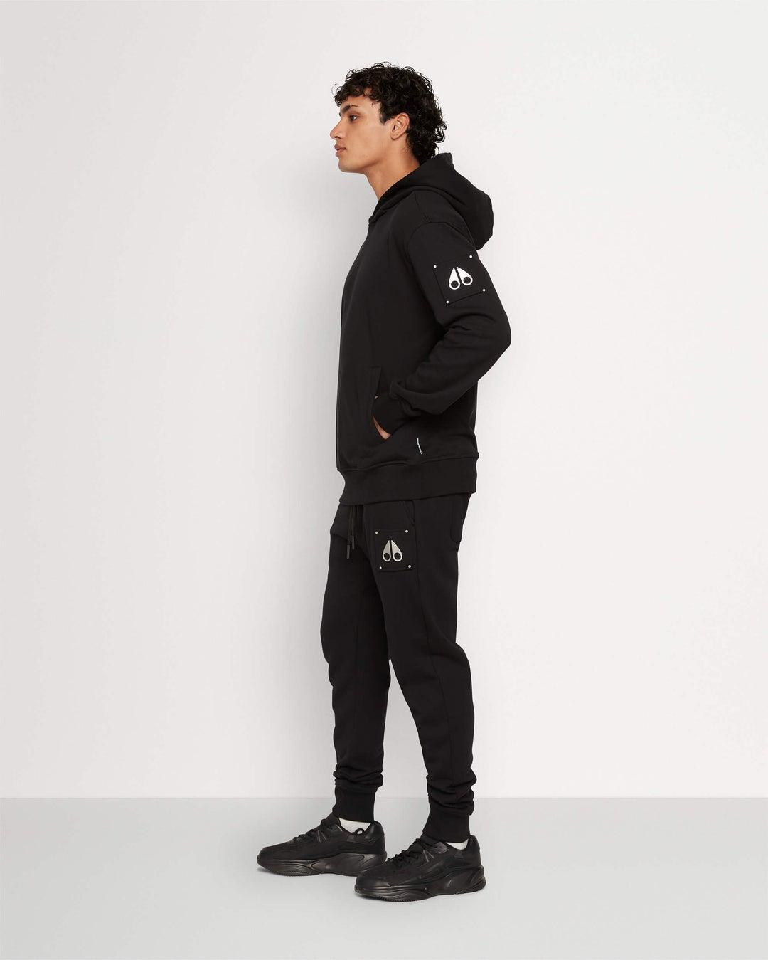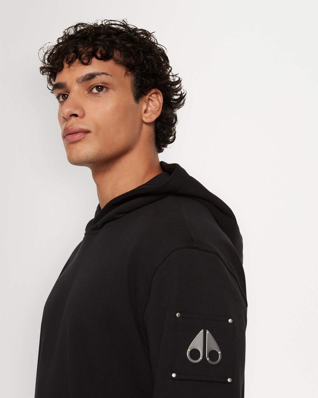 The Moose Knuckles Hartsfield Hoodie is ideal for those seeking protection from mild temperatures. Its ultra-light design and 29" back length make it comfortable to wear, while the fixed hood, welt waist pockets, rib knit waistband and cuffs, and metal logo sleeve provide additional protection from the elements. The woven logo tab adds a stylish touch to this practical garment.