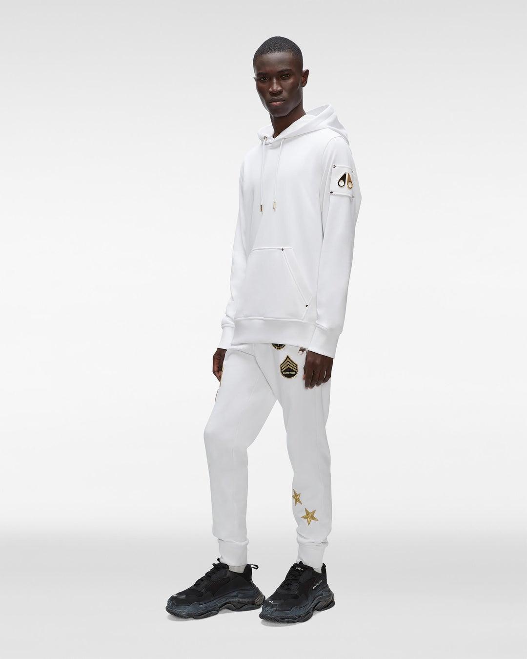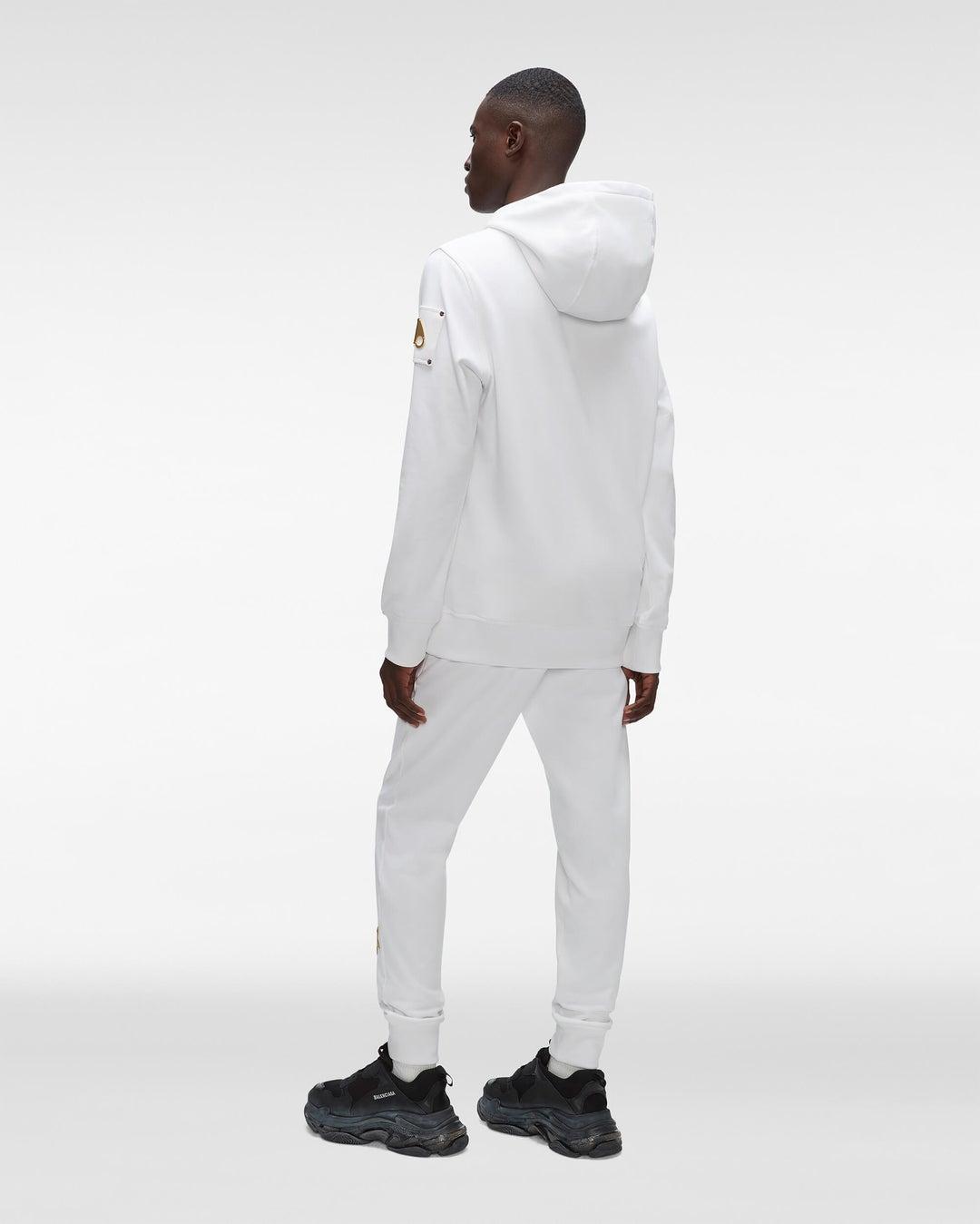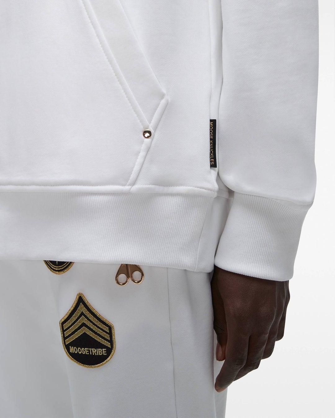 Details: Stay cozy and stylish with the Moose Knuckles Martense Hoodie. Made of premium cotton, this ultra-soft pullover has a lined drawstring hood and kangaroo pockets. It also boasts a genuine gold-plated logo on the sleeve, adding a touch of luxury to your winter wardrobe. Care and Materials: Machine wash cold wate