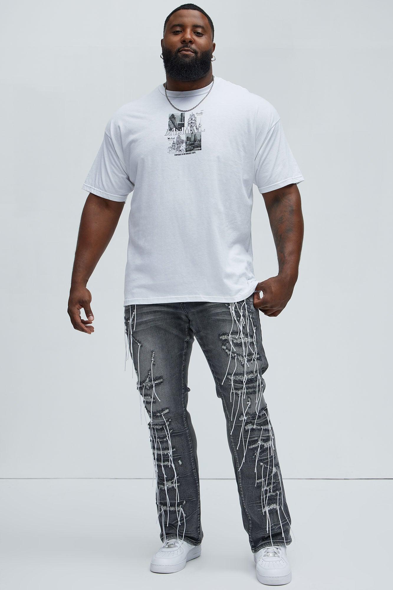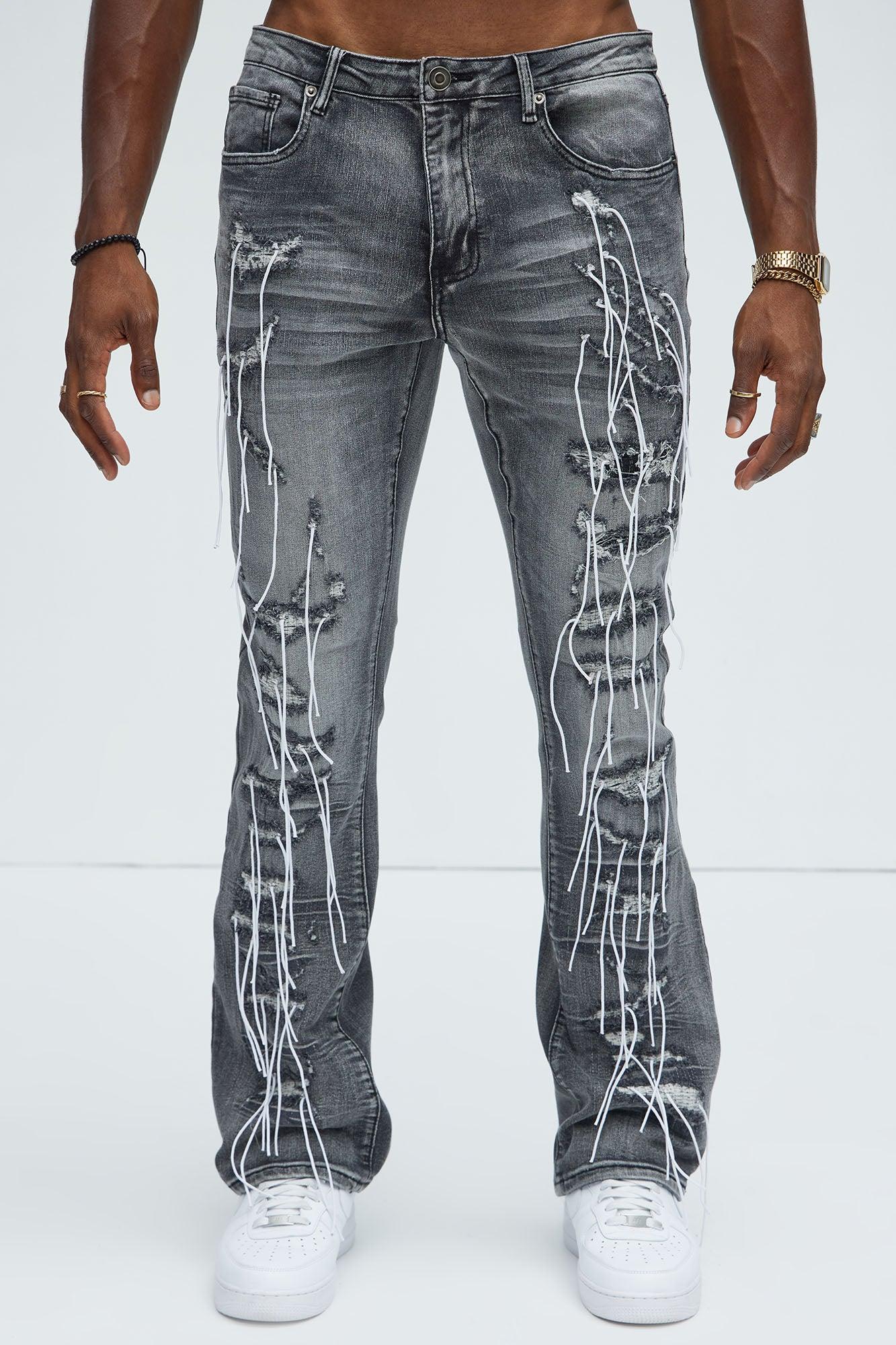 Available In Black Wash. Stacked Skinny Flared Fit Zip Fly Button Closure 5 Pocket Detail Frayed Detail Ripped And Repair Detail 70% Cotton, 28% Polyester, 2% Spandex Imported