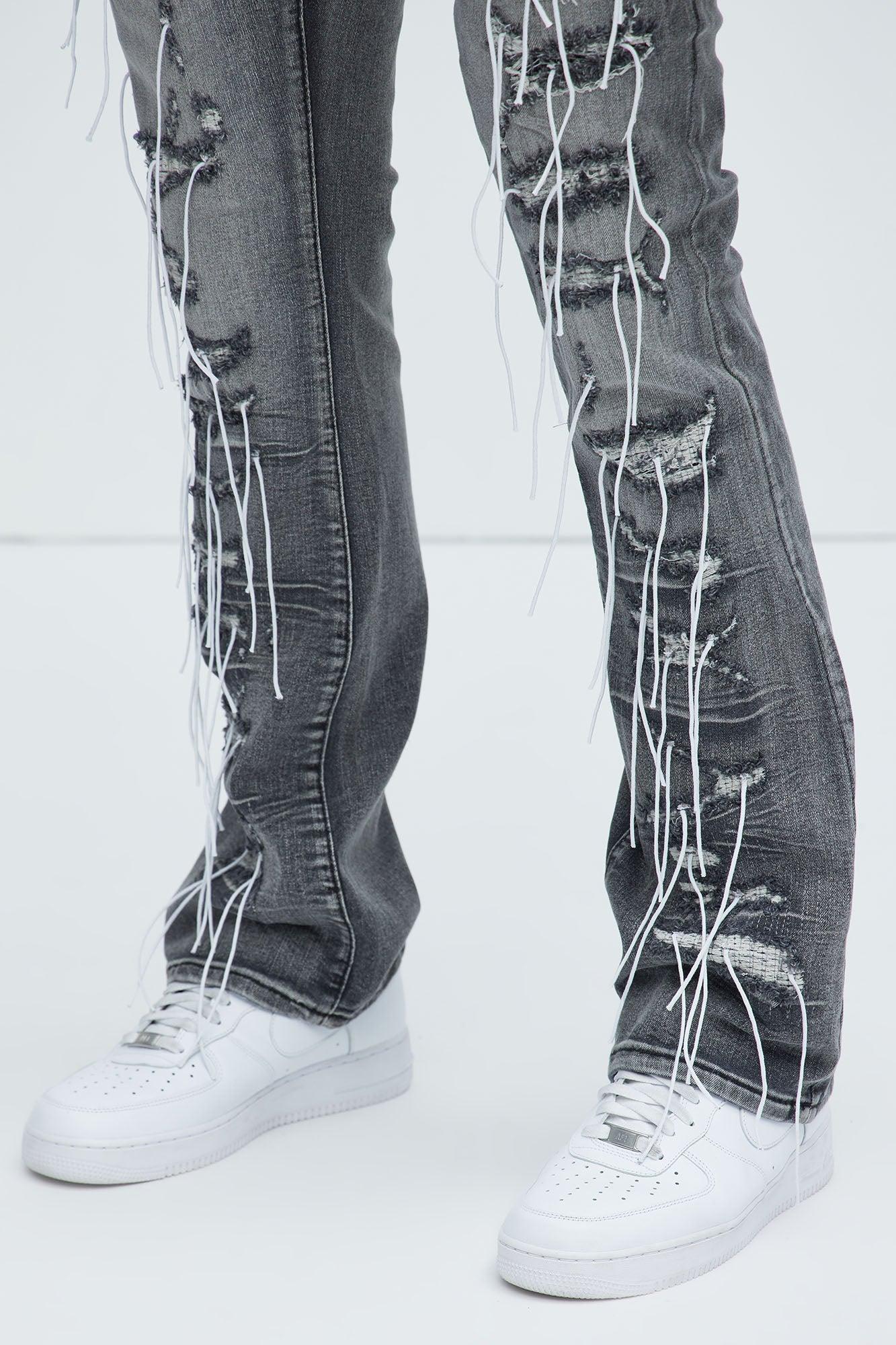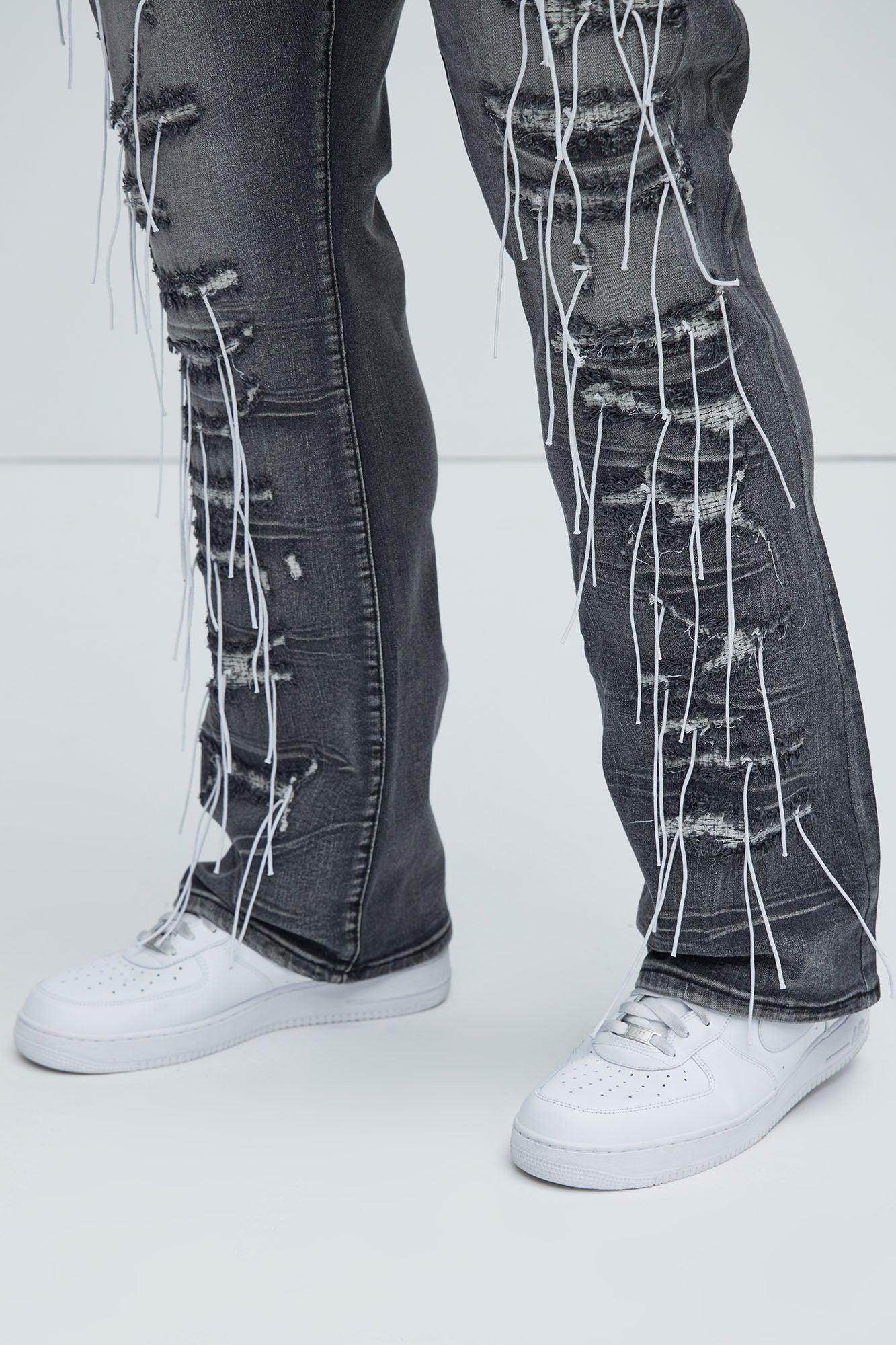 Morant Frayed Stacked Skinny Flare Jeans - Black Wash