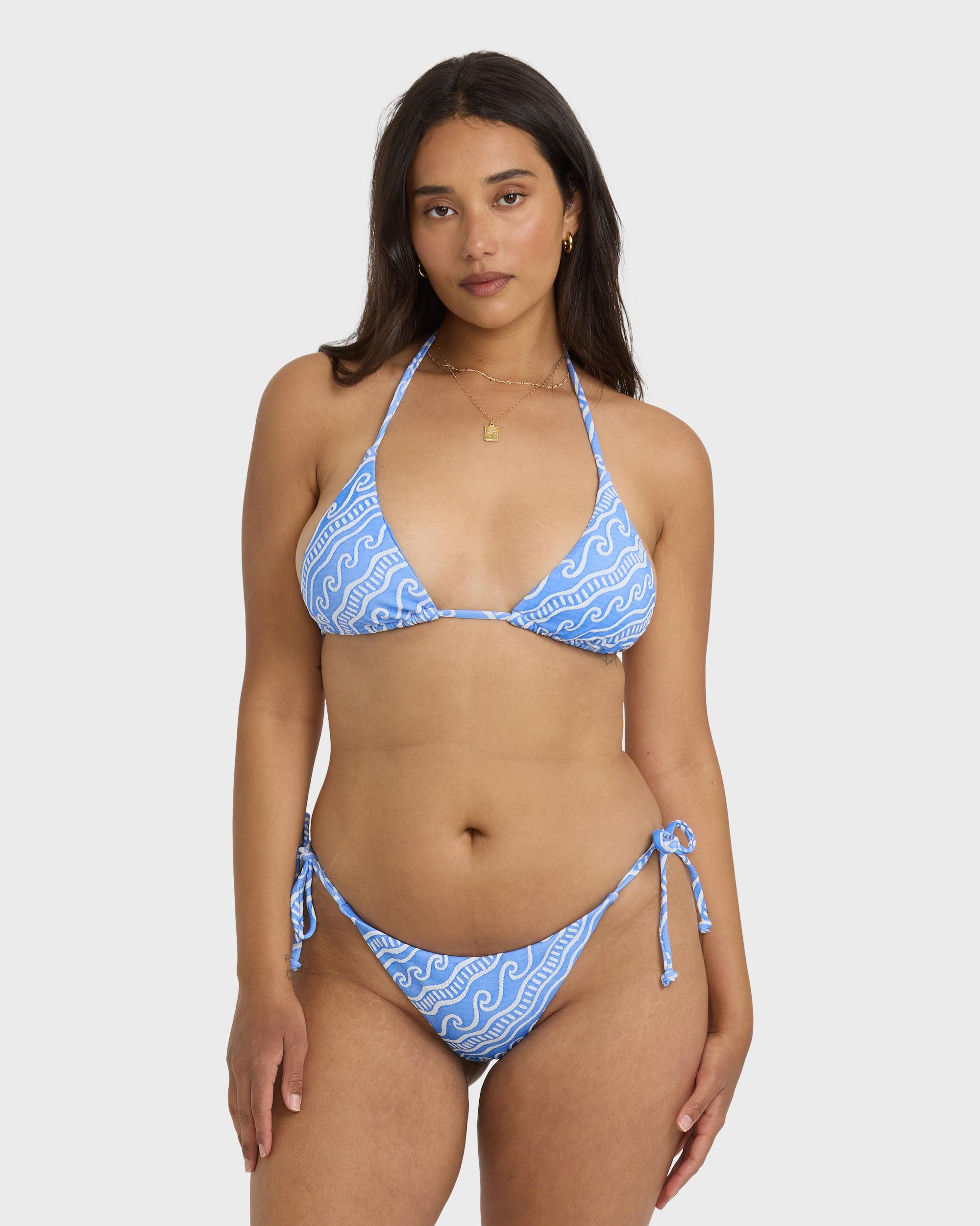 Our tie-side tanga bikini bottom adapts to your style, sitting high or low on the hips. The minimal coverage design and center back seam create a confident silhouette with subtle logo detail. Featured here in the Blue colorway. Features 52% Recycled Nylon (Polyamide), 38% Recycled Polyester, 10% Elastane Tie Side Tanga Sits high or low on hips with center back seam Skimpy bum coverage Logo embroidery at wearers back right side seam