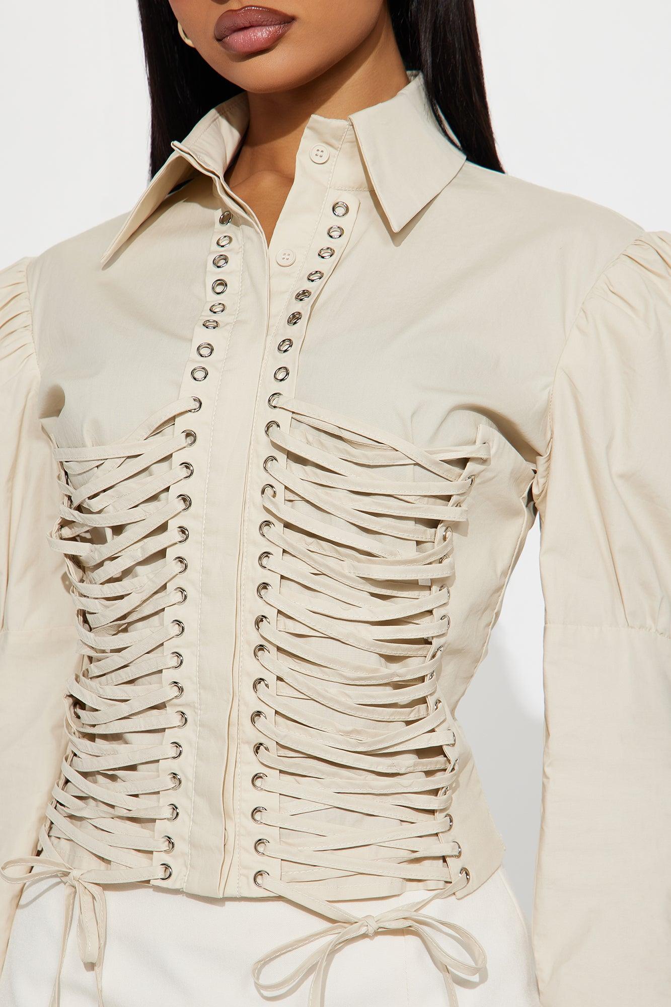 More Than You Think Lace Up Poplin Shirt - Khaki Female Product Image