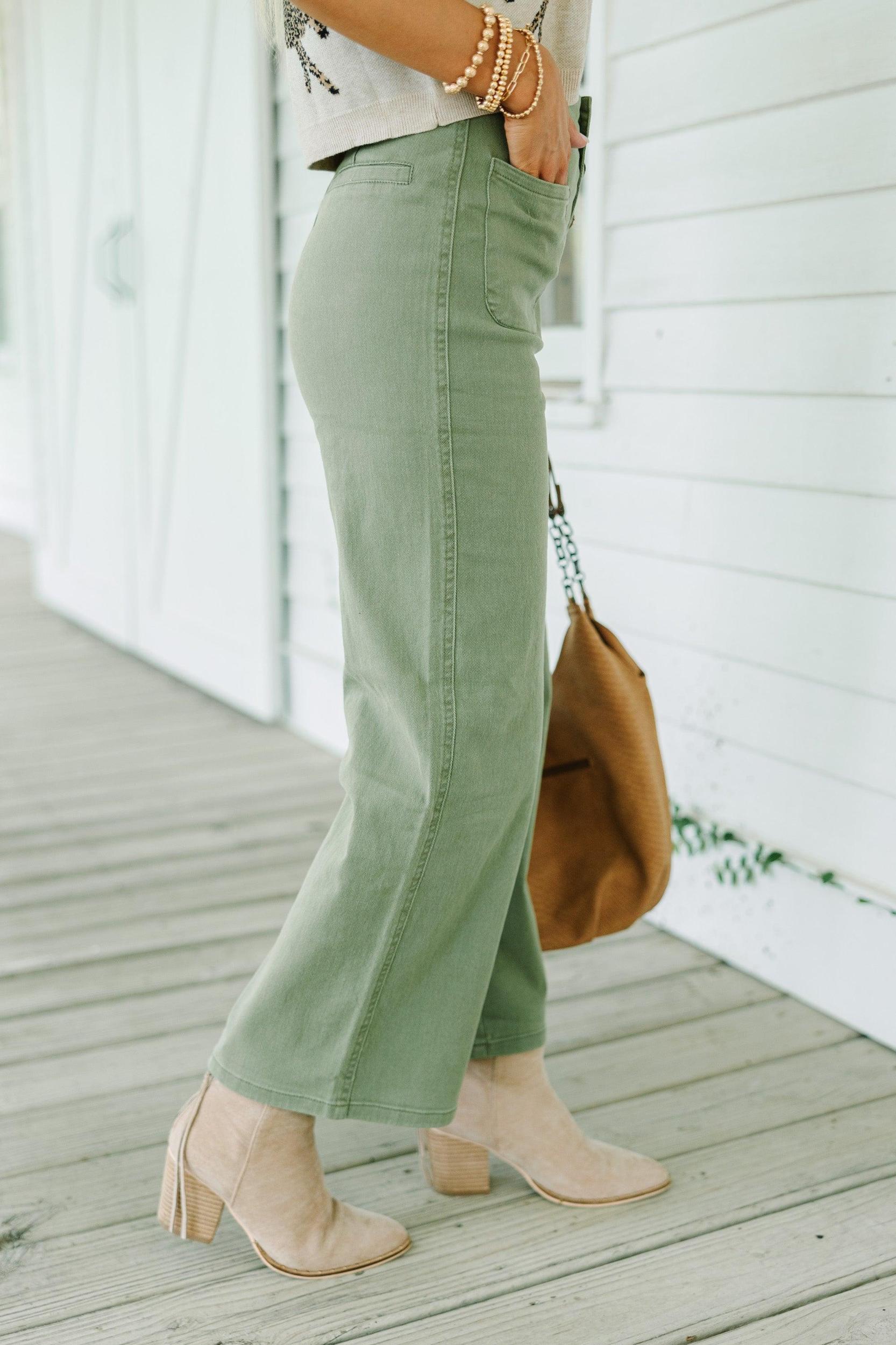 There is so much to love about these wide leg pants! They are so chic and will have you looking very trendy this fall! You are going to love pairing them with cozy sweaters and blouses alike! High waist Multi-button down front closure Pockets Wide legs Minimal stretch Baileigh is wearing the small.