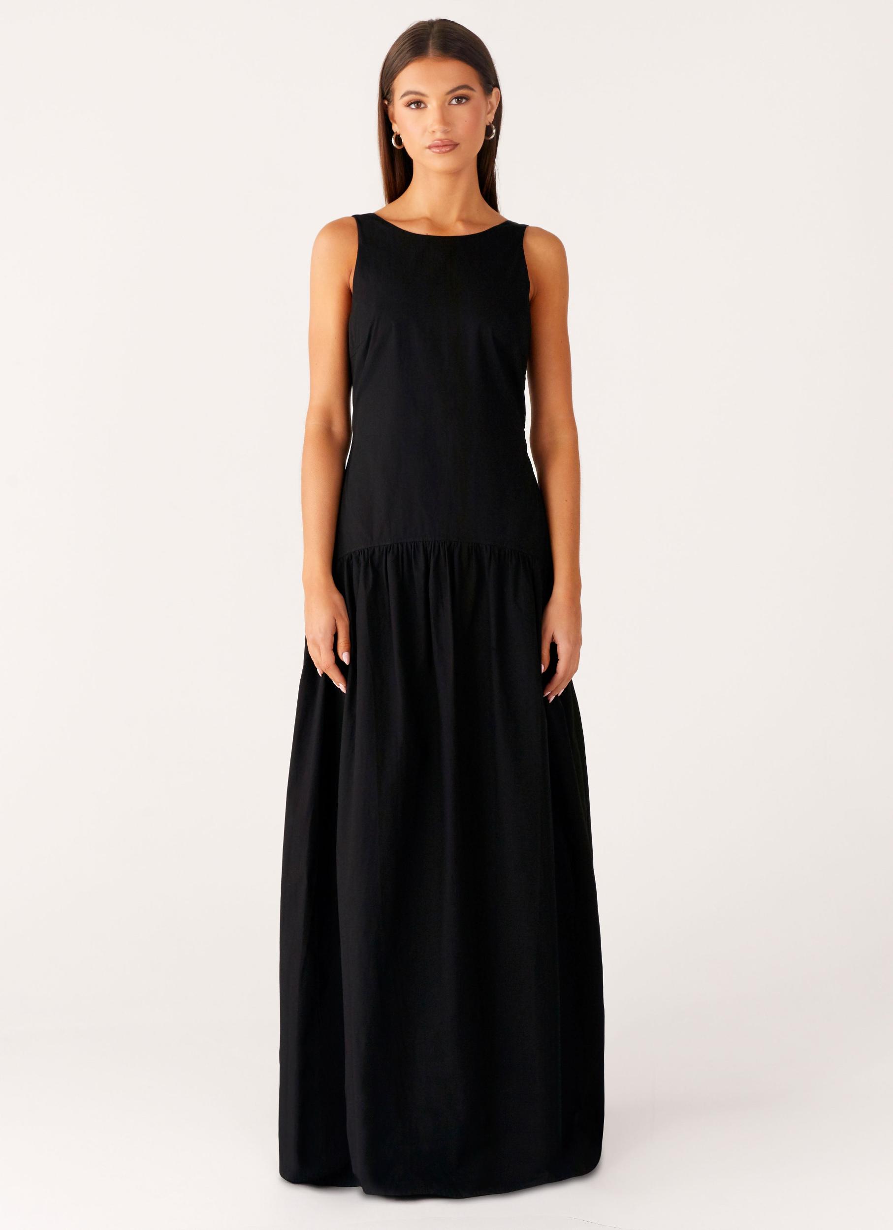 Peppermayo Exclusive The Morena Maxi Dress is crafted for nights where effortless elegance meets bold style. Featuring a rounded neckline, ruched drop waistline, and flowing A-line skirt, this fully lined dress also offers a low back and side invisible zipper for a seamless finish. Perfect for chasing golden skies and city lights. - Maxi length- Rounded neckline- Ruched drop waistline- A-line skirt- Low back- Fully lined- Side invisible zipper- Fabric: 100% Cotton, Lining: 100% Polyester Size AU 8 / US 4 garment measurements: Bust: 78 cm / 30.71 inWaist: 71 cm / 27.95 inHip: 100 cm / 39.37 inLength: 153 cm / 60.24 in Grace is 173cm and wearing a size AU 6 / US 2
