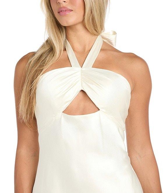 Morgan & Co. Satin Halter Neck Front Cut Out Dress