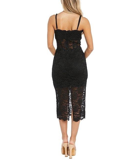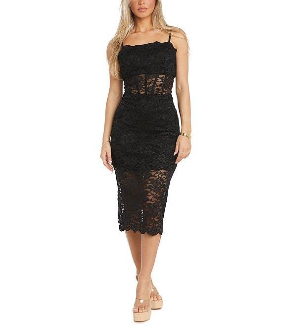 Morgan & Co. Stretch Lace Spaghetti Strap Corset Midi Dress