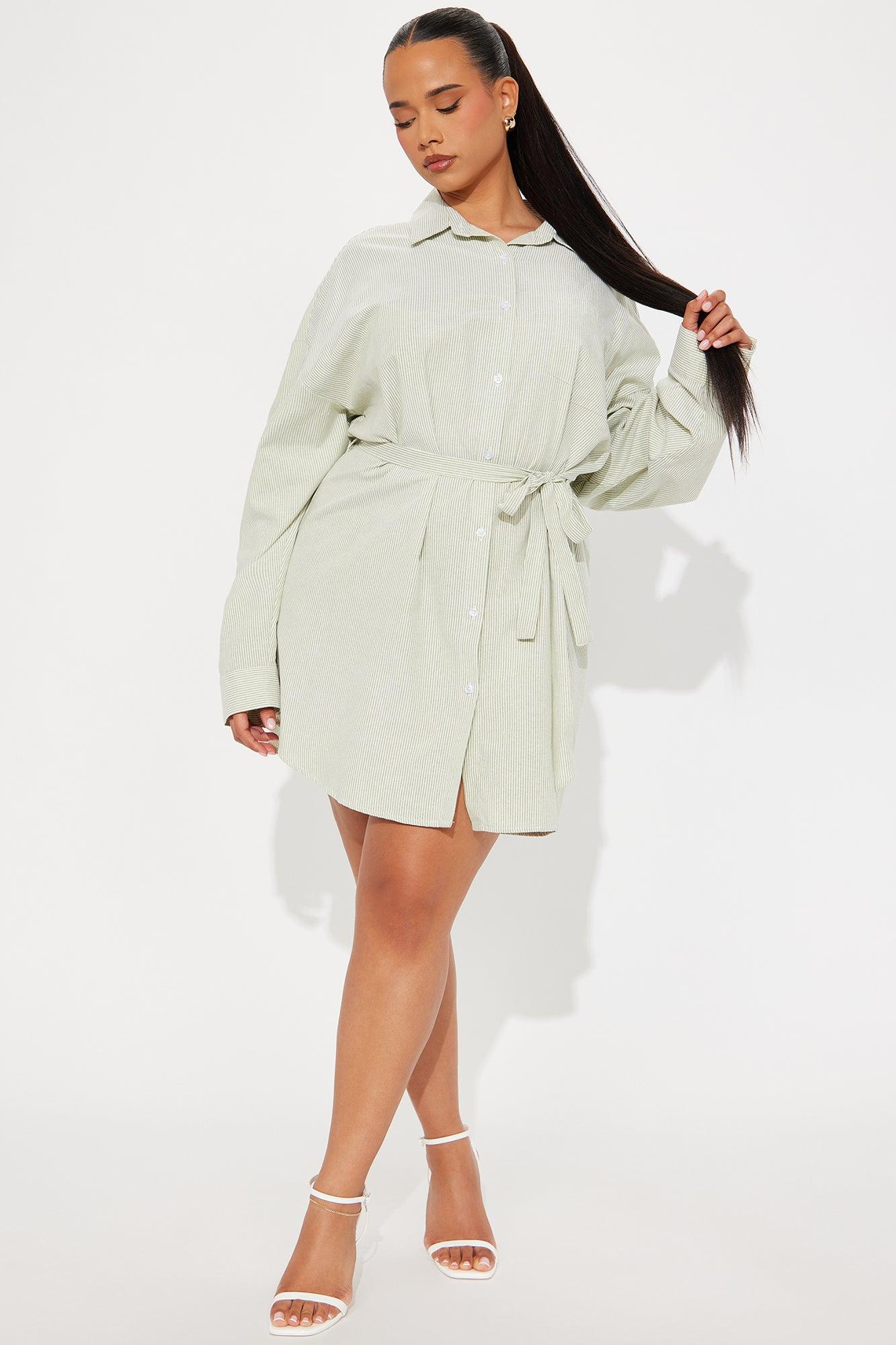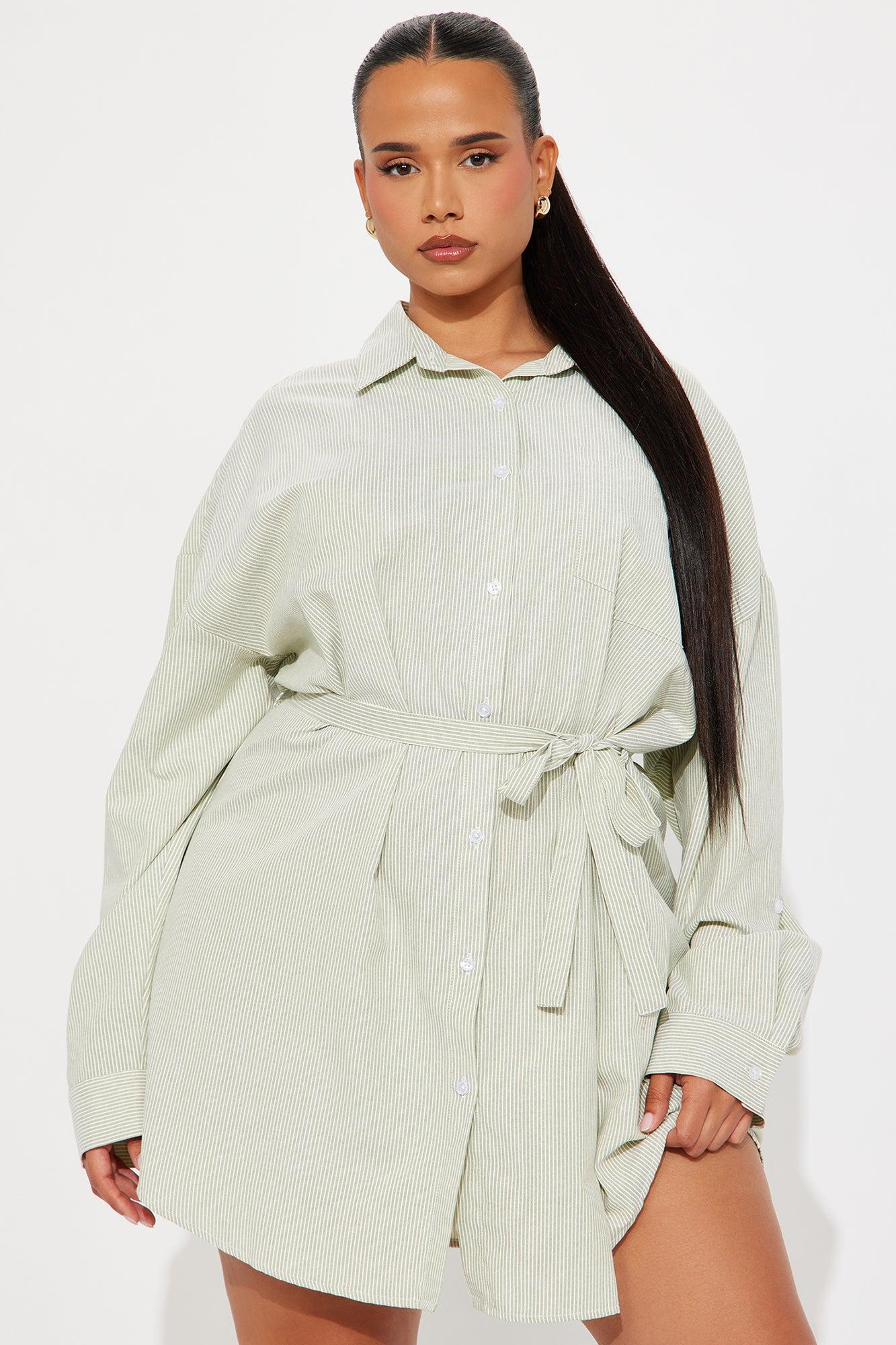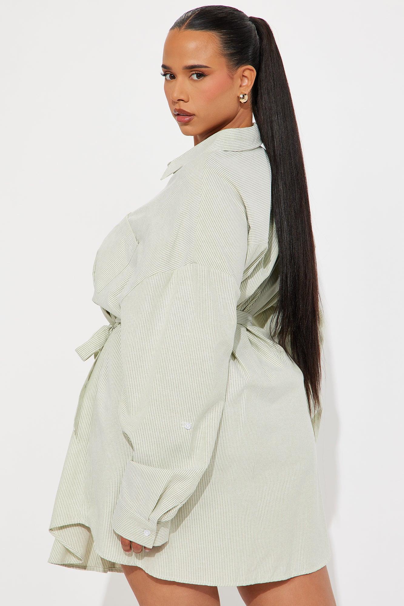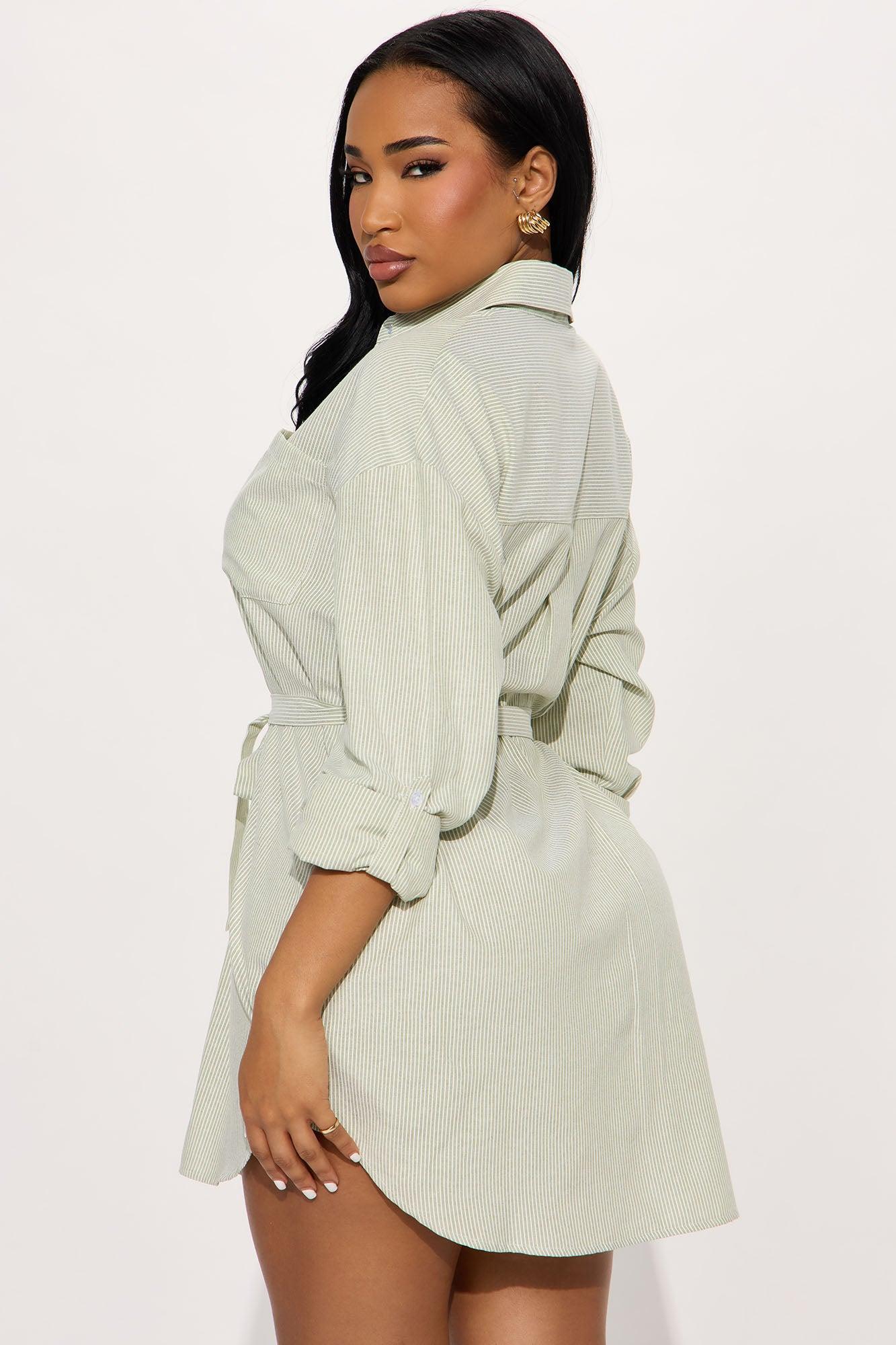 Morgan Pinstripe Shirt Mini Dress - Olive/combo