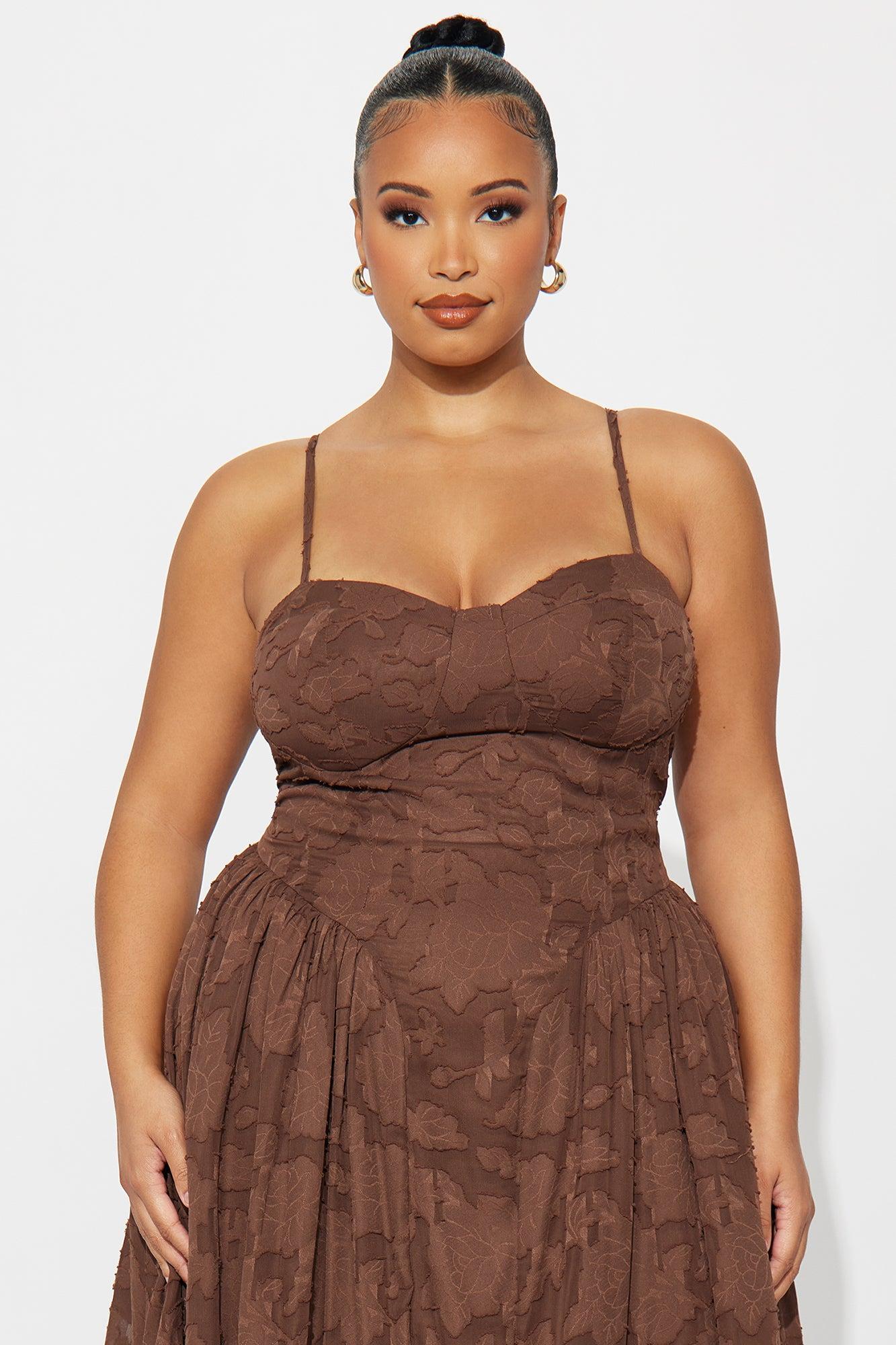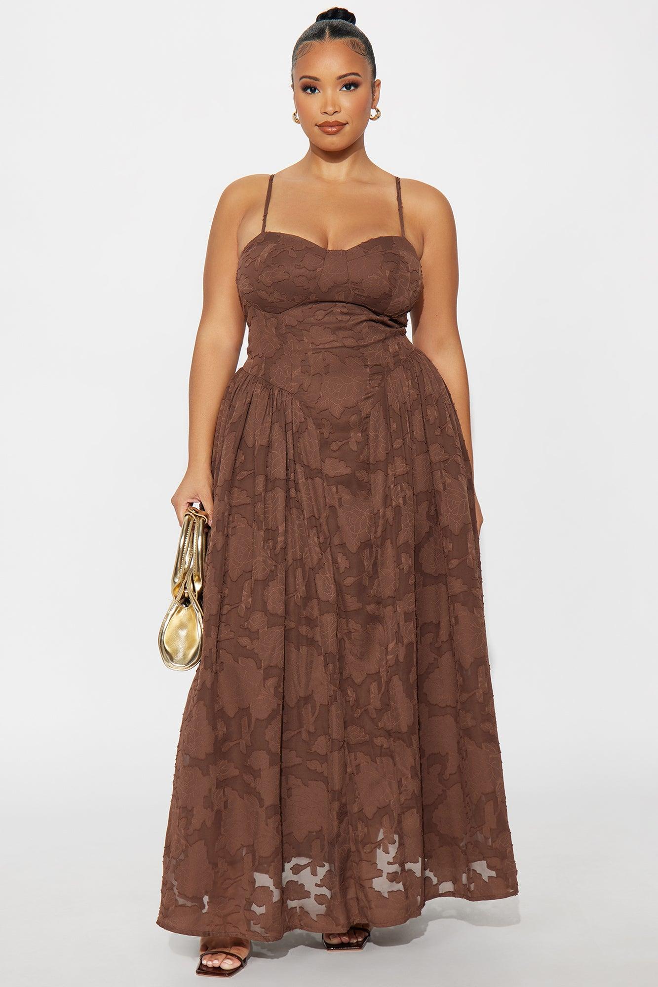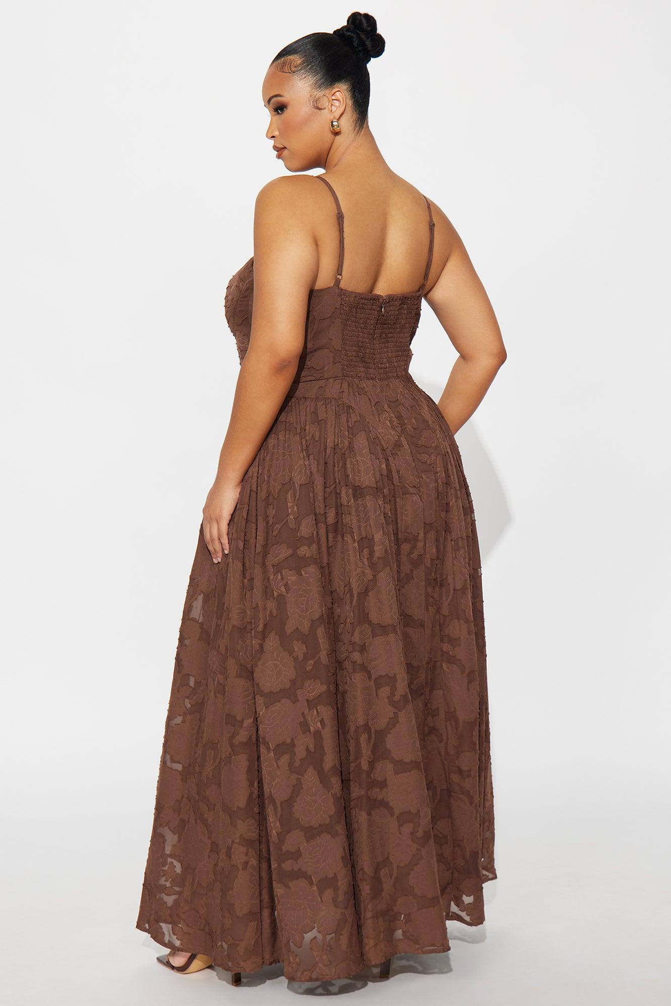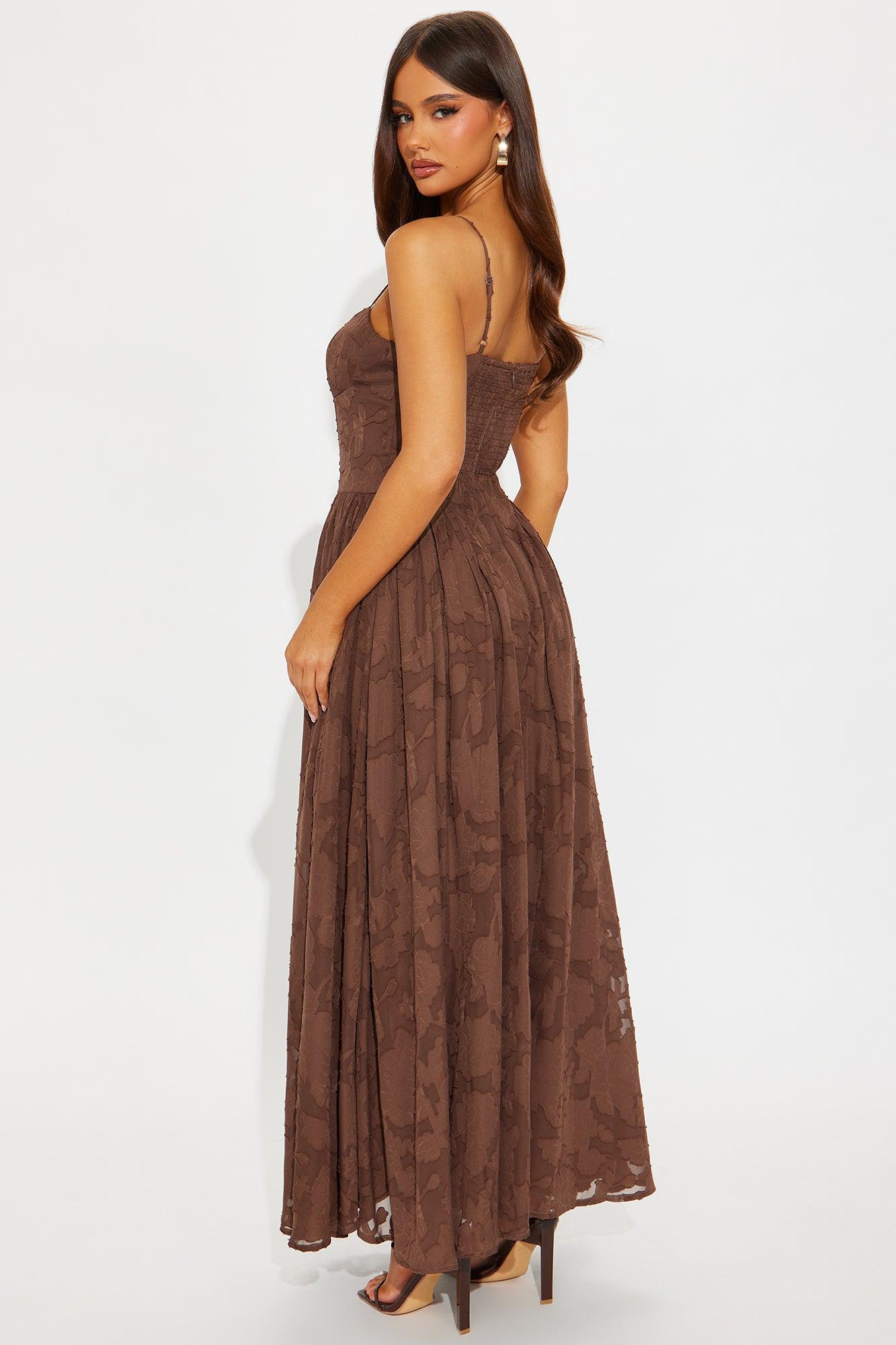 Morning Kiss Jacquard Maxi Dress - Brown Female